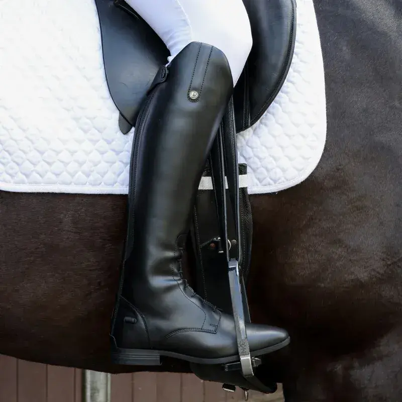 Home / Approved Brands / Brogini / Brogini Albareto Piccino Childrens Field Tall Black Riding Boots View more images Brogini Albareto Piccino Childrens Field Tall Black Riding Boots Product Code: 5212C28BLK Stock Status: In Stock Product Code: 5212C28BLK Stock Status: In Stock Size: C9 UK / EU 28 C10 UK / EU 29 C11 UK / EU 30 C12 UK / EU 31 C13 UK / EU 32 UK 1 / EU 33 UK 1.5 / EU 34 UK 2 .5/ EU 35 UK 3.5 / EU 36 UK 4.5 / EU 37 UK 5 / EU 38 £62.95 £70.00 Add to your Wish List You will earn 62 points with this purchase Description Brogini Albareto Piccino Children's Field Tall Riding Boots – Easy-Care, Stylish & Competition-ReadyThe Brogini Albareto Piccino Children's Field Tall Riding Boots offer the elegance of classic equestrian boots without the hassle of maintenance. Designed specifically for young riders, these boots are made from real-feel vegan synthetic leather, providing exceptional grip, durability, and a polished look. With a full-length rear zipper and elastic panel, they ensure a comfortable, close-fitting silhouette, while the laced field-style foot with elastic laces makes them easy to put on and take off. Featuring a high-cut Spanish top to elongate the leg, spur studs for stability, and a slimline competition sole, these boots are perfect for Pony Club, riding competitions, and everyday training.Key Features: Real-Feel Vegan Synthetic Leather – Provides the look and feel of genuine leather while being easy to clean with just soapy water. Full-Length Rear Zipper with Elastic Panel – Ensures a comfortable, snug fit that adapts to calf movement. Laced Field-Style Foot with Elastic Laces – Offers classic styling with enhanced flexibility. Slimline Competition Sole – Designed for a close-contact feel, perfect for riding precision. Slimline Ankle Fit for a Flattering Look – Creates a sleek silhouette while ensuring comfort and support. High-Cut Spanish Top – Elongates the leg for a refined competition-ready appearance. Top Zip Cover for Security – Prevents the zipper from slipping down during use. Side Strap with Brass Brogini Badge – Adds a stylish and traditional equestrian touch. Spur Studs on Either Side of the Heel – Helps keep spurs securely in place for greater riding stability.Ideal For: Pony Club & Young Competitive Riders – A stylish, low-maintenance boot perfect for shows and training. Everyday Riding & Stable Work – Durable, comfortable, and easy to clean, making them great for regular use. Riders Seeking a Classic Look Without the Break-In Period – No stiff leather to soften, just instant comfort and flexibility. Young Equestrians Who Need an Easy-Care Boot – Wipe-clean synthetic leather means no conditioning or polishing needed.Classic Equestrian Style Without the Hassle!The Brogini Albareto Piccino Children's Field Tall Riding Boots offer premium style, comfort, and functionality for young equestrians. Whether for competition, training, or everyday riding, these boots ensure a professional look with minimal effort—perfect for riders who want to focus on their performance rather than boot maintenance.Fits true to size. Attributes GENDER: Unisex Brand: Brogini Product Code: 5212C28BLK Size Chart
