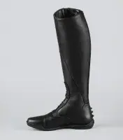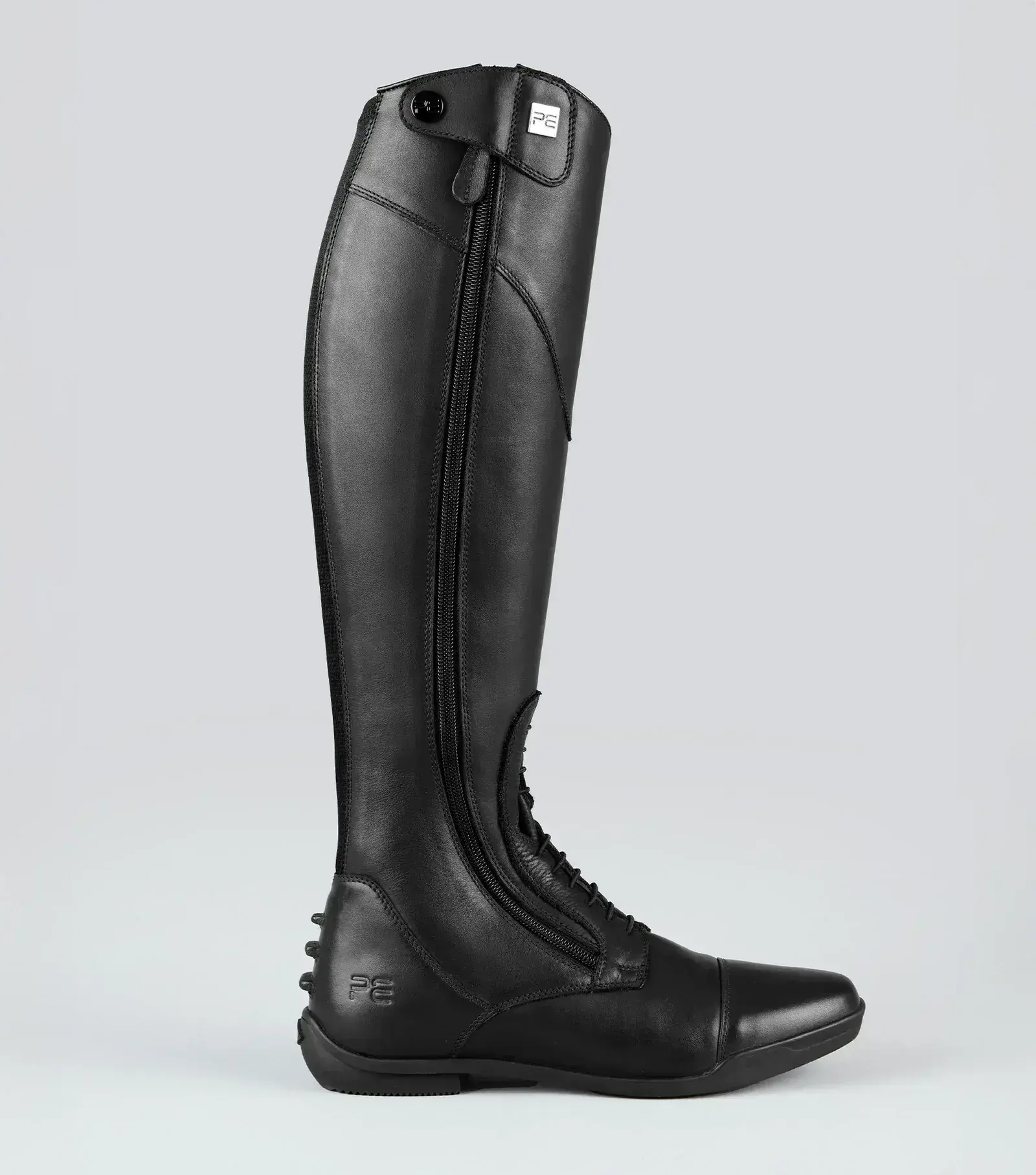 Home / Approved Brands / Premier Equine / Cedo Womens Leather Field Tall Riding Boots Black (Regular Calf) View more images Cedo Womens Leather Field Tall Riding Boots Black (Regular Calf) Product Code: 5002R4BLK Stock Status: In Stock Product Code: 5002R4BLK Stock Status: In Stock Size: UK 4 UK 5 UK 6 UK 7 UK 8 Colour: £171.00 £190.00 Add to your Wish List You will earn 171 points with this purchase Description The Cedo Ladies Leather Field Tall Riding Boots are the epitome of style, comfort, and performance, designed for the serious equestrian. Made from high-quality, soft yet durable leather, these boots offer an elegant appearance while ensuring long-lasting wear. The specialist jumping sole is engineered to provide optimal grip, flexibility, and shock absorption, making them perfect for showjumping and all disciplines requiring precise footwork and stability. This long riding boot features a smooth YKK zip, that runs down the outer calf, renowned for its durability and reliability, ensuring a snug, comfortable and secure fit, and making them easy to get on and off, even after a long day of riding. The chrome PE logo on the side offers a modern, polished finish, adding a touch of sophistication to the design. Designed with both function and fashion in mind, these boots have a close-contact ankle fit for maximum comfort, reducing fatigue during extended periods in the saddle. The supportive footbed ensures excellent arch support, which is essential for long rides and intense competition. The tall design also offers added protection for the calf while maintaining flexibility for ease of movement. Whether for everyday training or high-level competition, the Cedo Ladies Leather Field Tall Riding Boots provide the durability, performance, and style that any rider would appreciate. Technical Details Premium grade European leather Field boot design - elasticated lace panel Round toe shape Discreet comfort fit elasticated panel down the rear of the boot Zipper runs from ankle upwards on the outer calf Branded zip guard 3 level rear spur rest Premium YKK zip Textured inner calf Leather pull cord Dual density comfort insole PE branded badge Care Instructions Firstly we recommend you test all products used during the cleaning process on a concealed patch of leather to make sure they are compatible and ensure they give the desired finish. Use a soft bristled brush or damp sponge to gently remove dirt build up from around the boot. Pay particular attention to the zip and rim of the sole. Rinse a cloth in clean lukewarm water and gently wring it out, leaving a fair amount of moisture within it. We then recommend the use of a self-foaming footwear cleaner. Apply foam to the entire outer boot sparingly and carefully wipe away any remaining dirt using a soft circular motion - this will prevent streaking marks. Using a clean cloth, wipe away excess foam. Leave the leather to dry naturally away from direct heat sources. You may wish to apply a specialist leather wax or cream formula which will help preserve the leather's properties. As a finishing product we recommend the application of a protective spray which will help guard the leather against water, stains and most importantly urine, which can degrade leather over time. Top Tip: One of the key functional elements of your boot is the zipper, this should always be maintained by opening the zipper and wiping the grease and dust after each use. This will ensure a smooth sliding action and prevent debris from causing the zip to become stuck or split. Attributes GTIN: 716252385887 Colour: Black Brand: Premier Equine Product Code: 5002R4BLK
