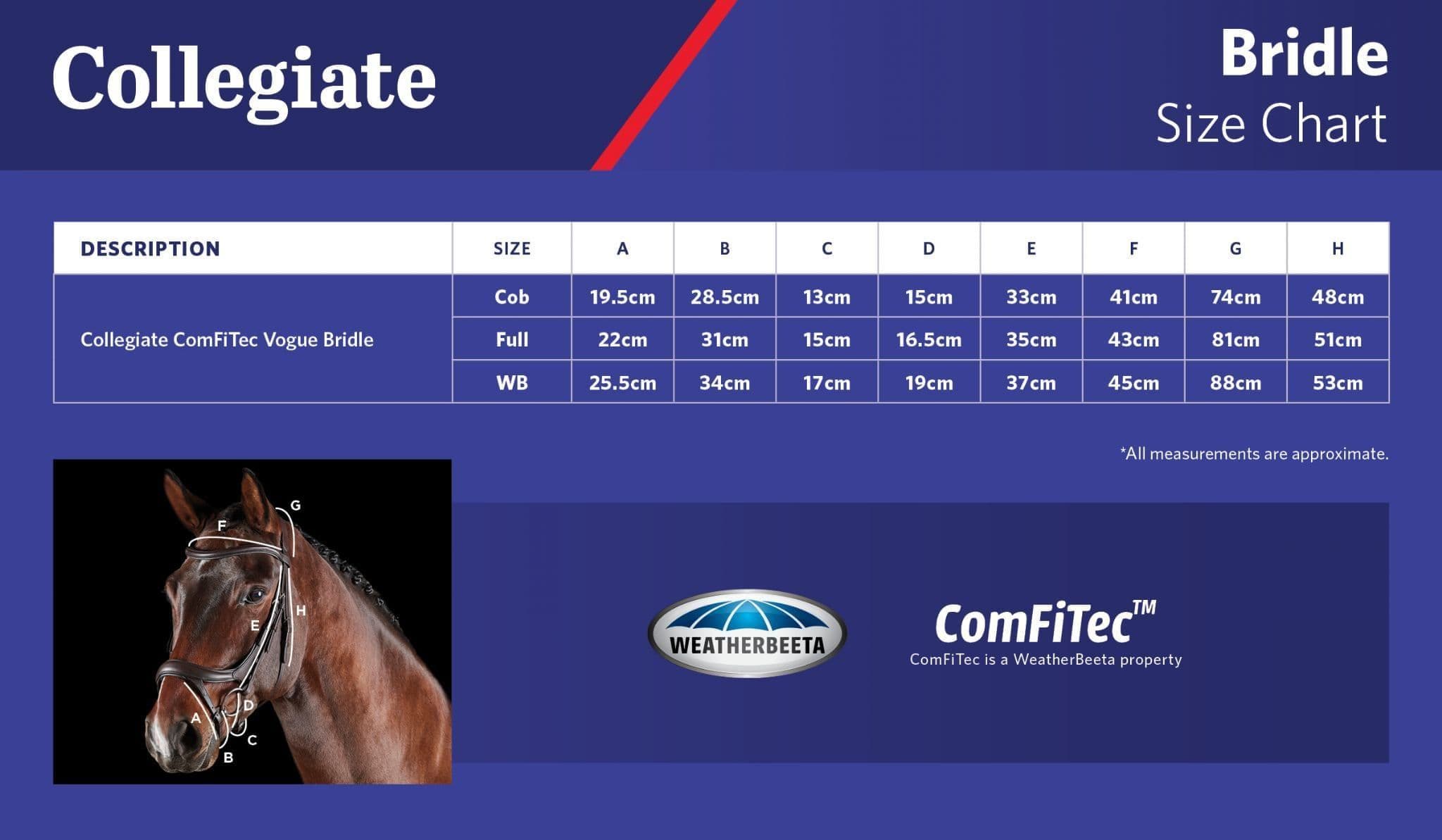 Home / Equestrian / Leatherwork/Tack / Horse Bridles / Collegiate Comfitec Vogue Anatomical Bridle Collegiate Comfitec Vogue Anatomical Bridle Product Code: 1006376006 Stock Status: In Stock Product Code: 1006376006 Stock Status: In Stock Size: COB FULL WARMBLOOD Colour: £104.95 £0.00 Add to your Wish List You will earn 104 points with this purchase Description The Collegiate Comfitec Vogue Anatomical Bridle is made from high quality Europeon leather and features an anatomical headpiece with super soft padding throughout and is wider shaped between the horses ears to distribute pressure evenly and comfortably. The curved nose piece is shaped to bypasses all the sensitive main facial nerves and offers ultimate comfort and protection. Features: Made from high quality European leather. Anatomical headpiece features super soft padding through out it and is wider shaped between the horses ears to distribute pressure evenly and comfortably. Curved nose piece which bypasses all the sensitive main facial nerves and therefore offering the ultimate comfort and protection. Attributes Colour: Black Brand: Collegiate Product Code: 1006376006