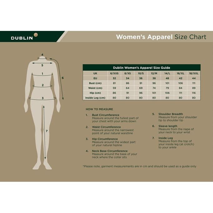 Home / Womens / Riding Clothing / Breeches & Tights / Dublin Shona Full Grip Silicone Print Denim Breeches View more images Dublin Shona Full Grip Silicone Print Denim Breeches Product Code: 1002015007 Stock Status: In Stock Product Code: 1002015007 Stock Status: In Stock Size: Ladies 8/26 Ladies 10/28 Ladies 12/30 Ladies 14/32 Ladies 16/34 Ladies 18/36 Ladies 20/38 Colour: £68.39 £0.00 Add to your Wish List You will earn 68 points with this purchase Description Vintage wash denim look breeches with silicone (PU) grip gel full seat. Bi-stretch denim fabric offers compression and coverage. 4 jean style pockets plus outer side phone pocket on right leg. Suede belt loops for that stylish riding look. Front zip snap closure. Mid rise, no gap waistband. 60% Cotton / 24% Polyester / 10% Viscose / 6% Elastane. Gel Full Seat Size Chart Attributes GTIN: 9329028267990 Colour: Blue GENDER: Female Brand: Dublin Product Code: 1002015007
