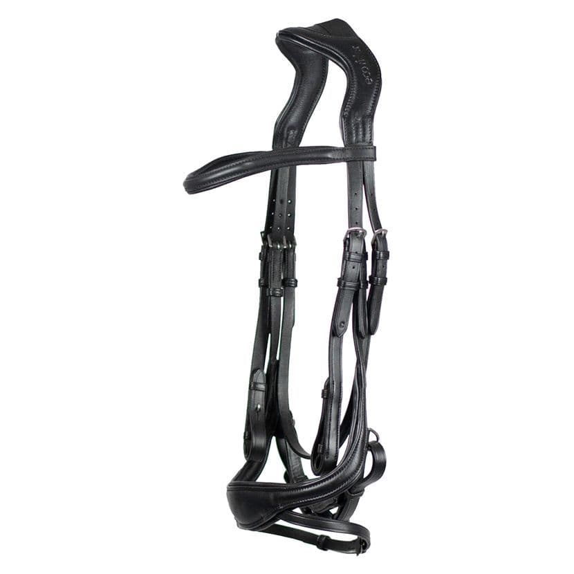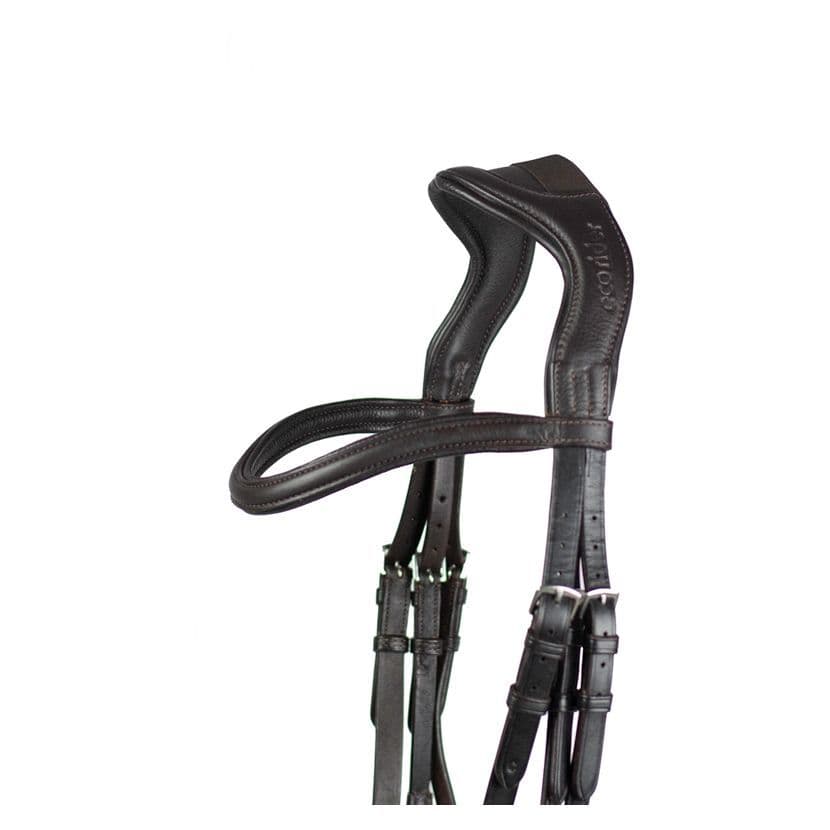 Home / Approved Brands / EcoRider / EcoRider Ecosoft Enigma Bridle View more images EcoRider Ecosoft Enigma Bridle Product Code: ECO601BNF Stock Status: In Stock Product Code: ECO601BNF Stock Status: In Stock Colour: Size: Cob Full £125.00 £0.00 Add to your Wish List You will earn 125 points with this purchase Description The Enigma Bridle offers complete luxurious comfort, made using the softest eco leather handcrafted to mould to your horse's unique shapeTo further increase comfort, the headpiece, browband and noseband are softly padded to alleviate pressure from your horse's face.PRODUCT DETAILSProduct features:Supersoft ergonomic headpiece complete with elastic insert and ear cutaway to ease any poll pressurePadded headpiece noseband and browbandAnatomic noseband with integrated flash strap that can be removed to leave no loop. This leaves a lovely clean line when the flash is not in useElegant lines are enhanced by the beautiful raised padded browbandEco LeatherThe vegetable tanning process results in leather with a distinct appearance and unmatched durability. One of the best features of vegetable-tanned leather is that it develops a patina over time with prolonged use and exposure to the environment. Due to the gentle processes involving several weeks of treatment, the vegetable-tanned leather has a much longer life than chrome-tanned leather. It is breathable and products with it get more comfortable the longer you use them. Attributes Colour: Black Brand: EcoRider Product Code: ECO601BNF