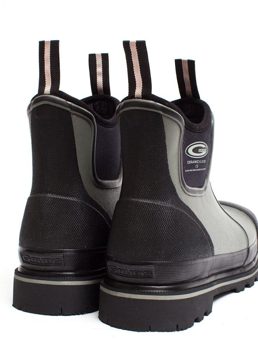 Home / Approved Brands / Grubs Boots / Grubs Ceramic Neoprene Non-Metallic Rubber Safety Wellington Driver 5.0 S5 Black Boot Grubs Ceramic Neoprene Non-Metallic Rubber Safety Wellington Driver 5.0 S5 Black Boot Product Code: CRM-444A-Grey-6 Stock Status: In Stock Product Code: CRM-444A-Grey-6 Stock Status: In Stock Size: 6 7 8 9 10 11 12 13 Colour: £50.95 £54.95 Add to your Wish List You will earn 50 points with this purchase Description Grubs CERAMIC DRIVER 5.0 S5 The CERAMIC DRIVER 5.0 S5 is made with non-metallic materials, making it a popular safety footwear choice for environments requiring non-conductivity of cold or electricity. Designed at ankle height, it provides comfort and warmth ideal for machinery drivers. Key Features CERAMIC SAFETY TOE - Compliant with BS EN ISO 203450 S5 DEFENDER Insole - 5mm Ballistic insole that is lightweight, flexible, and compliant with BS EN ISO 20344: 2004 5.8.2 & 5.9 5MM INSUFOAM-ULTRA Neoprene with Calf Height Rubber Provides warmth and comfort 6mm NITROCELL Footbed Athletic shoe-like cushioning with insulation properties TREDZ (DURAPRENE Rubber) Outsole Oil-resistant and passes TM144:1999 slip resistance test HEXZORB Technology Shock absorption system molded into heel for leg impact reduction Comfort Rating: -20ºC to +20ºC Metal-Free: Contains no metal components Sizing Guide UK Size Boot Height (mm) Calf Width (mm) UK6 200mm 410mm UK7 200mm 420mm UK8 205mm 420mm UK9 210mm 430mm UK10 215mm 430mm UK11 220mm 440mm UK12 225mm 440mm Please note: Our Wellington Boots include a 15mm allowance for wool blend/combination socks. We recommend purchasing the same size as your everyday comfortable footwear. For half-sizes, please size down. Care Instructions Brush Me, Wash Me: Rinse boots after each use. Once a month, clean with mild soap and water using a soft bristle brush. Allow boots to air dry naturally (avoid direct heat sources). Oil Me: Once dry, apply a rubber conditioner or natural oil to maintain flexibility, especially on the toe and ankle flex points. We recommend Revivex Rubber Care Spray available at grubswarehouse.com. Attributes GTIN: 5055931402985 Colour: Grey GENDER: Unisex Brand: Grubs Boots Product Code: CRM-444A-Grey-6