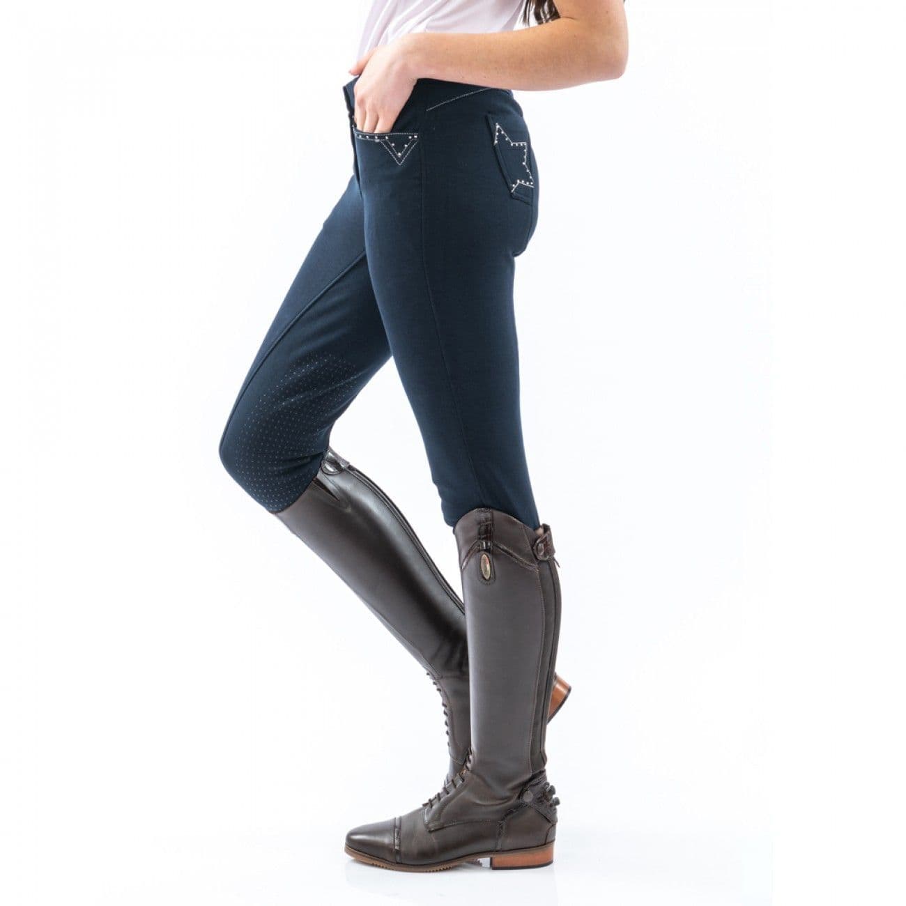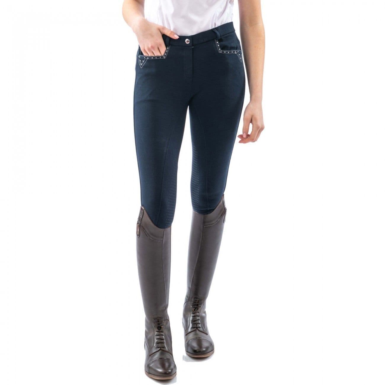 Home / Womens / Riding Clothing / John Whitaker Birtle Diamante Ladies Breeches John Whitaker Birtle Diamante Ladies Breeches Product Code: B1472403 Stock Status: In Stock Product Code: B1472403 Stock Status: In Stock Size: Size 24 - UK 6 Size 26 - UK 8 Size 28 - UK 10 Size 30 - UK 12 Size 32 - UK 14 Size 34 - UK 16 Colour: £45.00 £0.00 Add to your Wish List You will earn 45 points with this purchase Description The exceptionally comfortable Ladies Birtle Breeches are made from 95% Cotton and 5% Spandex mix. Featuring: 2x front and rear pockets with contrast metallic stitch and diamante detailing. The simple dotted silicone knee keeps you secure in the saddle. Stretchy Lycra ankles Subtle Silicone knee for added grip Whitaker embroidered logo 2 x front diamante pockets and star rear pockets Zip Fasten with Hook and Eye faux button Full tonal stitching for competition use or everyday use Attributes GENDER: Female GTIN: 5055790877405 Colour: Blue Brand: Whitaker Product Code: B1472403
