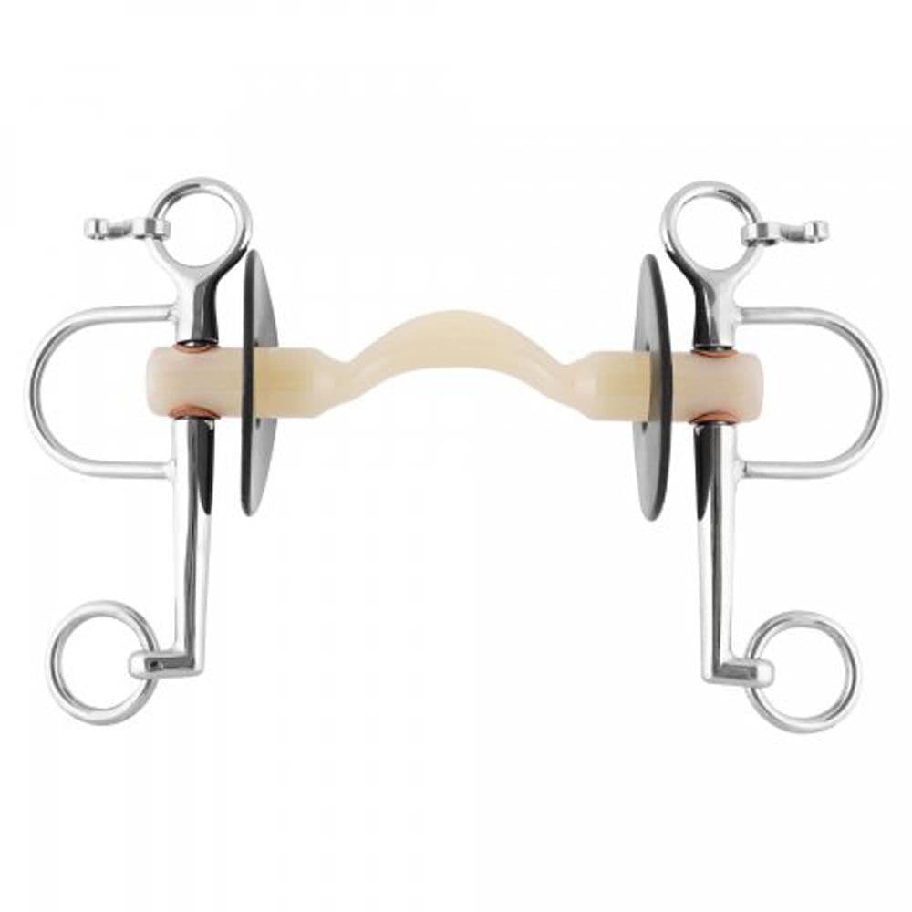 Home / Equestrian Store / Horse Bit Range / Nathe Bits / Nathe Pelham | Hard Mullen Mouth with Port | Short Shanks Nathe Pelham | Hard Mullen Mouth with Port | Short Shanks Product Code: 4208513500 Stock Status: In Stock Made to order in Germany. Delivery 3 weeks approx. Product Code: 4208513500 Stock Status: In Stock Made to order in Germany. Delivery 3 weeks approx. Size: 5" / 125mm 5.25" / 135mm 5.75" / 145mm £220.95 £0.00 Add to your Wish List You will earn 220 points with this purchase Description The Nathe Pelham has a Hard Thermoplastic Mullen Mouth design which is 20mm thick, and has a Port moulded in to the mouthpiece. The short shank version is designed to offer a quicker action. The bit provides a measured amount of leverage and acts on the poll and lower jaw while the port offers relief to the horses tongue making added space for it to sit under the bit. Impact on mouth poll and lower jaw. Relieves the middle of the tongue. When used with a curb chain this limits the leverage effect on the poll and acts on the lower jaw. Variable rein options to adjust the leverage effect on the poll. Suitable for strong horses. Bit guards protect the lips. Curb chain not included. Delivery approximately 3 weeks. Attributes GTIN: 4022853240033 Brand: Nathe Product Code: 4208513500