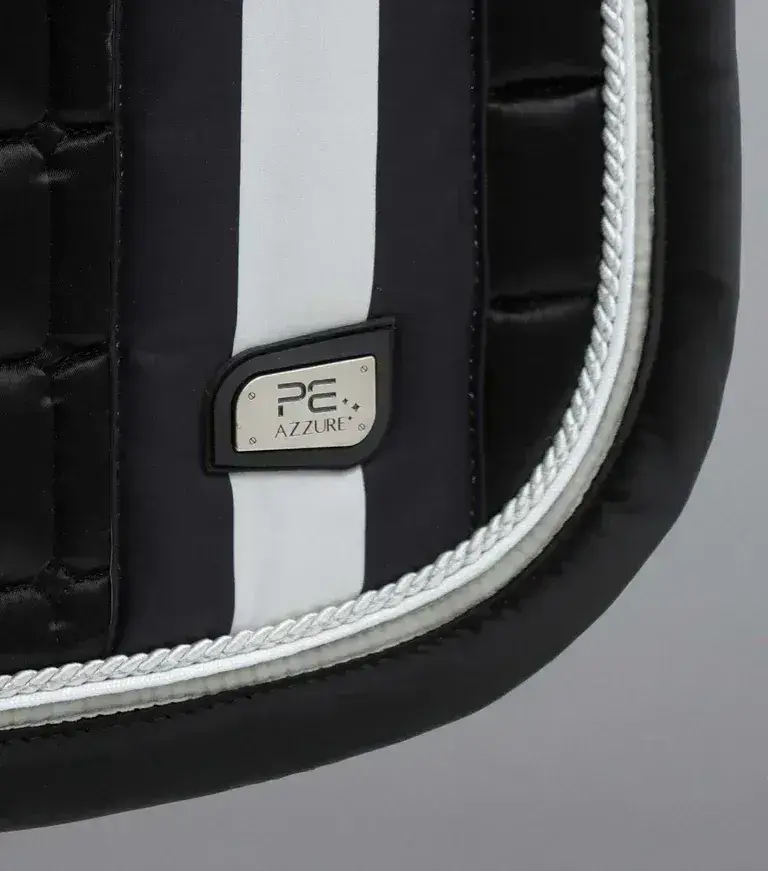 Home / Approved Brands / Premier Equine / Premier Equine Azzure Anti Slip Satin Saddle Pad View more images Premier Equine Azzure Anti Slip Satin Saddle Pad Product Code: 3025BLK Stock Status: In Stock Product Code: 3025BLK Stock Status: In Stock Colour: Navy Black Grey Wine Brown White Size: Full £80.96 £92.00 Add to your Wish List You will earn 80 points with this purchase Description Redefining elegance, driving technical performance, a desirable saddle pad designed for GP/Jump saddles.Crafted with skill and optimum design detail, the ultra-luxe Azzure saddle pad delivers unique style, engineering and performance. The anatomically shaped top line features 100g of cushioned comfort for your horse decorated with an anti-slip Tech Grip patterned gel to effortlessly secure your saddle in place. A soft, shaped techno suede wither pad roll sits forward from the pommel and also helps prevent the saddle from sliding forwards.The lower section of the pad is constructed in a refined cushioned quilting. Lined on the underside with a highly absorbent fabric featuring anti-static & anti-bacterial finishes. This advanced lining helps keep your horse comfortable, wicking moisture away from their coat during exercise. Additional anti-slip protection and anti-rub exist in the form of the 600-denier polyester girth panel protection. Expertly finished with intricate detailing and premium quality branding. Ideal for those who want an exquisite look with the technical performance that the modern horse & rider require.Your Azzure Anti Slip Satin GP/Jump Square has been carefully hand packaged in a complimentary, reusable zip-fastened storage bag to keep your tack room tidy when not in use and for easy carrying.High wither designTech grip anti slip gel featuresAnti-slip wither pad rollTopline 100g cushioned comfort panelQuilted outerLuxury satin finishWicking fibre fillAnti-static & anti-bacterial liningDesirable detailingPremium PE branded broochAnti-rub protectionLength = 72cm, Depth = 53cmComes inside a complimentary, reusable zip-fastened storage bag Attributes Colour: Black Brand: Premier Equine Product Code: 3025BLK