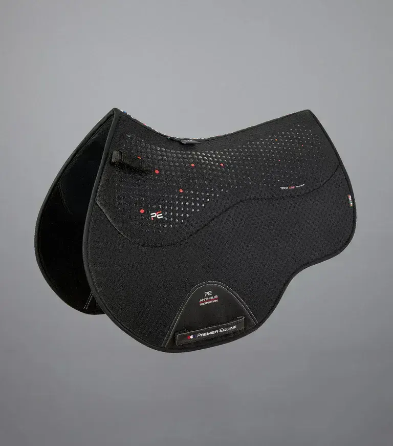Home / Approved Brands / Premier Equine / Premier Equine Close Contact Airtechnology Anti-Slip GP/Jump Saddle Square View more images Premier Equine Close Contact Airtechnology Anti-Slip GP/Jump Saddle Square Product Code: 3034W Stock Status: In Stock Product Code: 3034W Stock Status: In Stock Colour: Black Navy White Grey Size: Full £80.96 £92.00 Add to your Wish List You will earn 80 points with this purchase Description This technically advanced saddle pad combines breathable Airtechnology with Tech Grip anti-slip features to provide the ultimate performance GP/Jump saddle pad.Engineered with two innovative sections. The top under-saddle section features an anti-slip Tech Grip patterned gel to help prevent unwanted movement and slipping. Shaped to fit under the saddle the upper section offers shock absorbing cushioning with a padded anti-slip lining which is comfortable against your horses skin and further prevents slipping.The lower section has been crafted with shockproof Airtechnology which allows airflow between the saddle and your horses skin and the technical perforated fabric allows moisture to escape, keeping your horse dry and comfortable.A 600-denier polyester girth panel provides anti-rub protection and our adjustable Velcro girth straps and adjustable D loop straps allow you to easily secure and adjust the pad to your saddle.Ideal for horses who require a high level of breathability and anti-slip protection.Your Airtechnology Anti Slip GP/Jump Square has been carefully hand packaged in a complimentary, reusable zip-fastened storage bag to keep your tack room tidy when not in use and for easy carrying.Shockproof material with AirtechnologyTech Grip gel upper keeps saddle in placeSoft anti-slip fabric on the inside surface prevents slippingFoam cushioning provides increased comfortHigh wither designMaximises airflowMinimises heat and sweat build upAnti-rub protectionAdjustable D loop strapsAdjustable Velcro straps to help with practical girthingLength = 72cm, Depth = 51cmComes inside a complimentary, reusable zip-fastened storage bag Attributes Colour: Black Brand: Premier Equine Product Code: 3034W