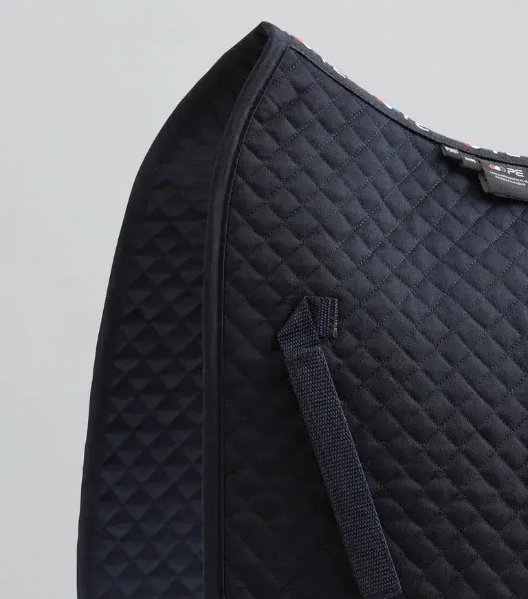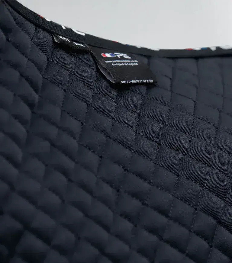 Home / Approved Brands / Premier Equine / Premier Equine Pony Plain Cotton Dressage Saddle Square View more images Premier Equine Pony Plain Cotton Dressage Saddle Square Product Code: 3035N Stock Status: In Stock Product Code: 3035N Stock Status: In Stock Size: Pony Colour: White Black Navy Royal Blue £35.10 £39.00 Add to your Wish List You will earn 35 points with this purchase Description Designed with the highest quality cotton this saddle pad is suitable for everyday or competition use with pony dressage saddles.Designed for comfort the wicking fibres present in the filling draw moisture and sweat through the pad, keeping your pony dry and comfortable. Made entirely from a high quality cotton and featuring a 600-denier polyester anti-rub girth panel, this is the ideal every day or competition dressage saddle pad for ponies.Your Pony Plain Cotton Dressage Square has been carefully hand packaged in a complimentary, reusable zip-fastened storage bag to keep your tack room tidy when not in use and for easy carrying.Highest quality cottonHigh wither designWicking fibres in the filling draw away sweat and moistureAnti-rub protectionAdjustable Velcro straps to help with practical girthingLength = 60cm, Depth = 50cmComes inside a complimentary, reusable zip-fastened storage bag Attributes Colour: Black Brand: Premier Equine Product Code: 3035N Size Chart