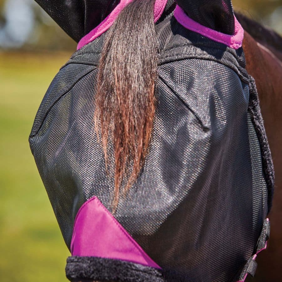 Home / Approved Brands / Weatherbeeta / Weatherbeeta Comfitec Deluxe Durable Mesh Mask With Ears Weatherbeeta Comfitec Deluxe Durable Mesh Mask With Ears Product Code: 1009429008 Stock Status: In Stock Product Code: 1009429008 Stock Status: In Stock Size: COB FULL MINI PONY SMALL PONY WARMBLOOD Colour: Black/Purple Navy/Purple £19.99 £0.00 Add to your Wish List You will earn 19 points with this purchase Description "Designed with vision, comfort and durability in mind with ear coverage. Durable mesh fly mask made to protect your horse against flies and UV. The mesh is sturdy and easy to see through with double darts for a superb fit and adjustable double touch tape tabs for ease of use. Soft fleece binding and hole to pull forelock through for additional comfort with stretch fleece poll for a secure and comfortable fit. Air stream ear design to allow air flow. Offering 60%+ UV block. Mesh: 90% PVC 10% polyester. Bindings: 100% polyester.Durable mesh fly mask made to protect your horse against flies and UV.Easy to see through with double darts for a superb fit.Adjustable double touch tape tabs for ease of use.Soft fleece binding and hole to pull forelock through for additional comfort.Stretch fleece poll for a secure and comfortable fit.Air stream ear design to allow air flow.Offering 60%+ UV block.Mesh: 90% PVC 10% polyester. Bindings: 100% polyester. Attributes Colour: Black Brand: Weatherbeeta Product Code: 1009429008