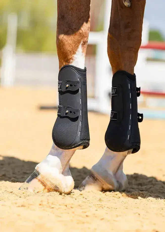 Home / Approved Brands / Woof Wear / Woof Wear Vision Tendon Boot Woof Wear Vision Tendon Boot Product Code: WB0076-BKST-SM Stock Status: In Stock Product Code: WB0076-BKST-SM Stock Status: In Stock Size: SM ML LXL Colour: £52.79 £59.99 Add to your Wish List You will earn 52 points with this purchase Description Trusted by riders for their exceptional breathability and protection, the Woof Wear Vision Tendon Boots are engineered for performance and comfort. Designed with a vented PU shell to keep tendons cool and high-impact foam inserts for superior shock absorption, these boots ensure your horse stays protected without overheating. Contrasting mesh panels prevent grit and debris from entering, while the ergonomic shape supports full flexion for unrestricted movement. Finished with branded elastic straps and secure billet fastenings, and sold in pairs, these tendon boots combine function and style seamlessly.FEATURESVented PU shell promotes airflow for optimal coolingHigh-impact foam inserts shield tendons from knocks and strikesFine mesh panels help prevent grit and debris from enteringErgonomic design supports natural movement and flexionSoft edge binding ensures a secure, comfortable fitBranded elastic straps with classic billet-style fastenings for a smart finishSold as a pair for balanced protectionCARE INSTRUCTIONSClose all straps prior to washingMachine wash max 30°C, gentle spinWash using a non biological washing detergentDO NOT tumble dryDO NOT leave in strong sunlight Attributes Colour: Black Brand: Woof Wear Product Code: WB0076-BKST-SM