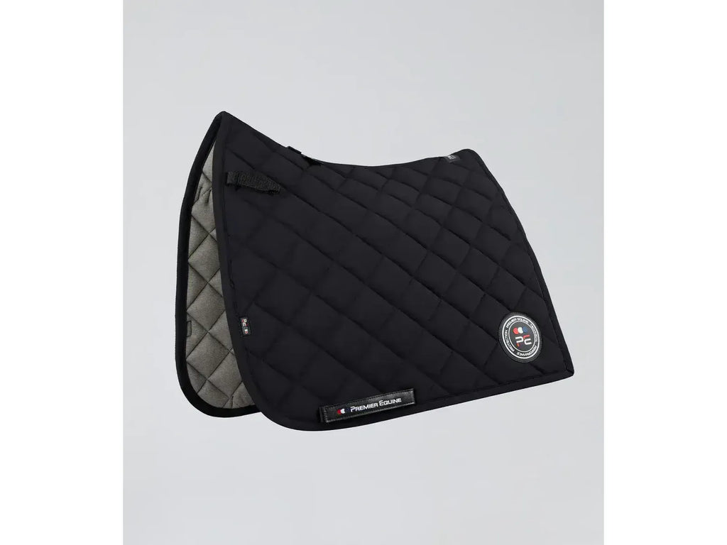 The Atlas Close Contact Dressage Square offers a refined blend of style and function, featuring elegant diamond quilting and a smooth matte finish. Crafted from high-quality materials, it includes a nano-bonded bamboo lining that effectively wicks away sweat to keep your horse dry, comfortable, and protected from rubbing.