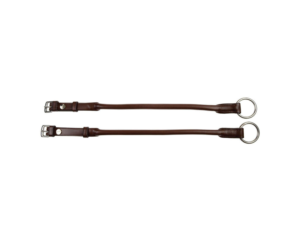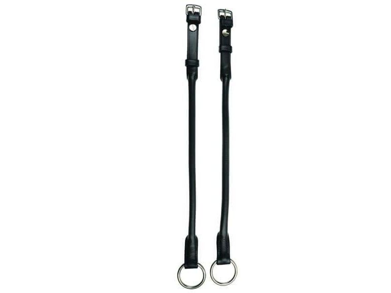The Collegiate Cheltenham Gag Cheek Pieces are leather cheeks to be used with a running gag bit. The buckle ends can be opened to easily slide through the rings of a running gag bit. The hardware (rings) are made from stainless steel for a zero rust finish.