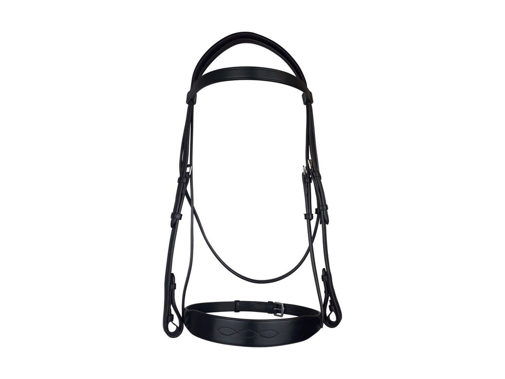 Our Show bridle is beautiful in its balanced simplicity allowing the luxurious eco leather and skilled craftsmanship to speak for itself.Made to a classic traditional design with a broad noseband with matching stitching detail and plain browband this bridle is fit to grace any show ring,PRODUCT DETAILSFeatures include adjustable cheekpieces and secure hook & eye fastenings for a tailored, comfortable fit.