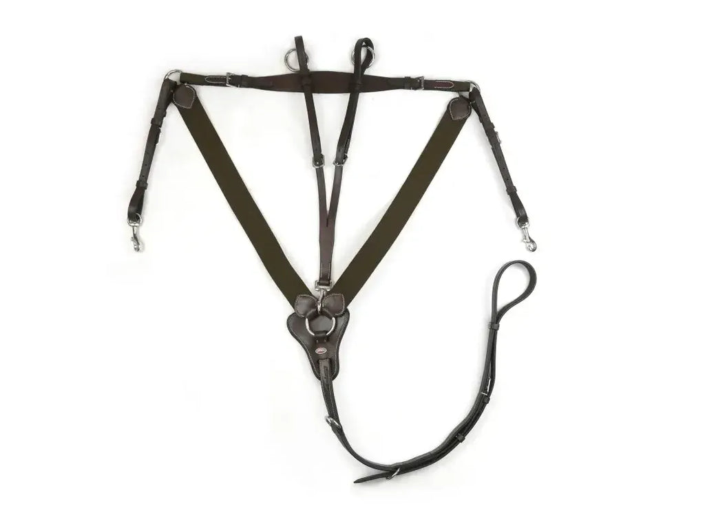 The Whitaker BP048AV elasticated V-Check Breastplate is ideal for hunting, showjumping and eventing and now features a hunting attachment.