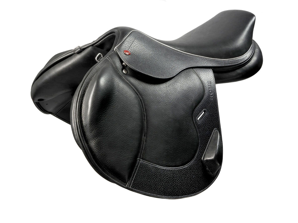 The calfskin leather flaps of the Rome Mono Flap Saddle has a reinforced printed leather panel which has been planed for a seamless fit and maximum flexibility. The buttery soft calfskin flaps feature a large padded knee roll and prominent back block which help keep the rider in place during high-octane jumps, banks and climbs. The pommel of the Rome Event Saddle has been lowered to allow the rider to easily rise up and out of the saddle for clearing high obstacles. This saddle has an interchangeable gullet bar system.