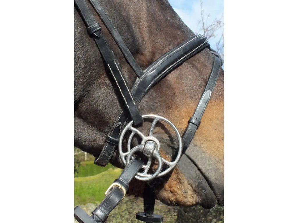 The snaffle bit is a single jointed mouthpiece with a 'nutcracker' action that when the rider places pressure on the reins to change direction or communicate with the horse it will apply pressure on either side of the mouth rather than the tongue. The John Whitaker Universal Bit is the definitive bit to use for any horse. This bit enables a variety of horses to use this bit in different situations. By adjusting the point at which the cheek pieces and reins are attached, determines the strength of the bit itself. The Universal bit comes in five various mouth pieces. Snaffle, bullet, copper bullet, twisted or a softer leather mouth piece.