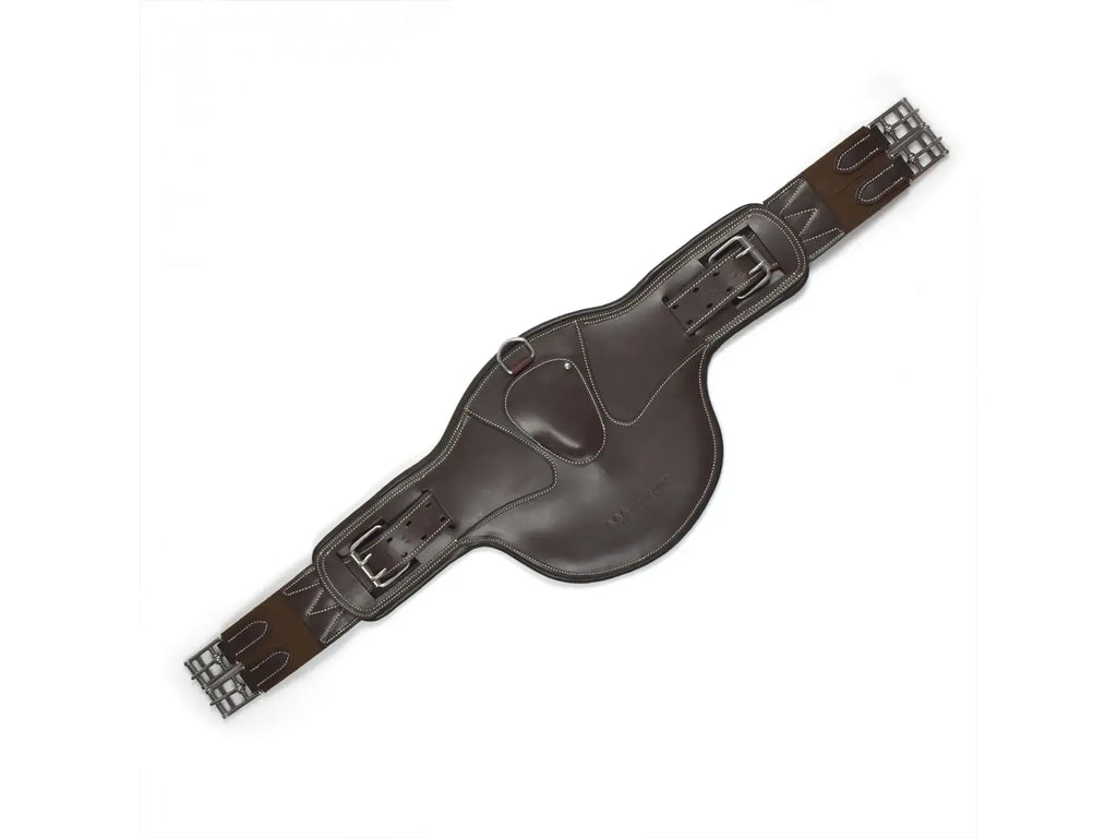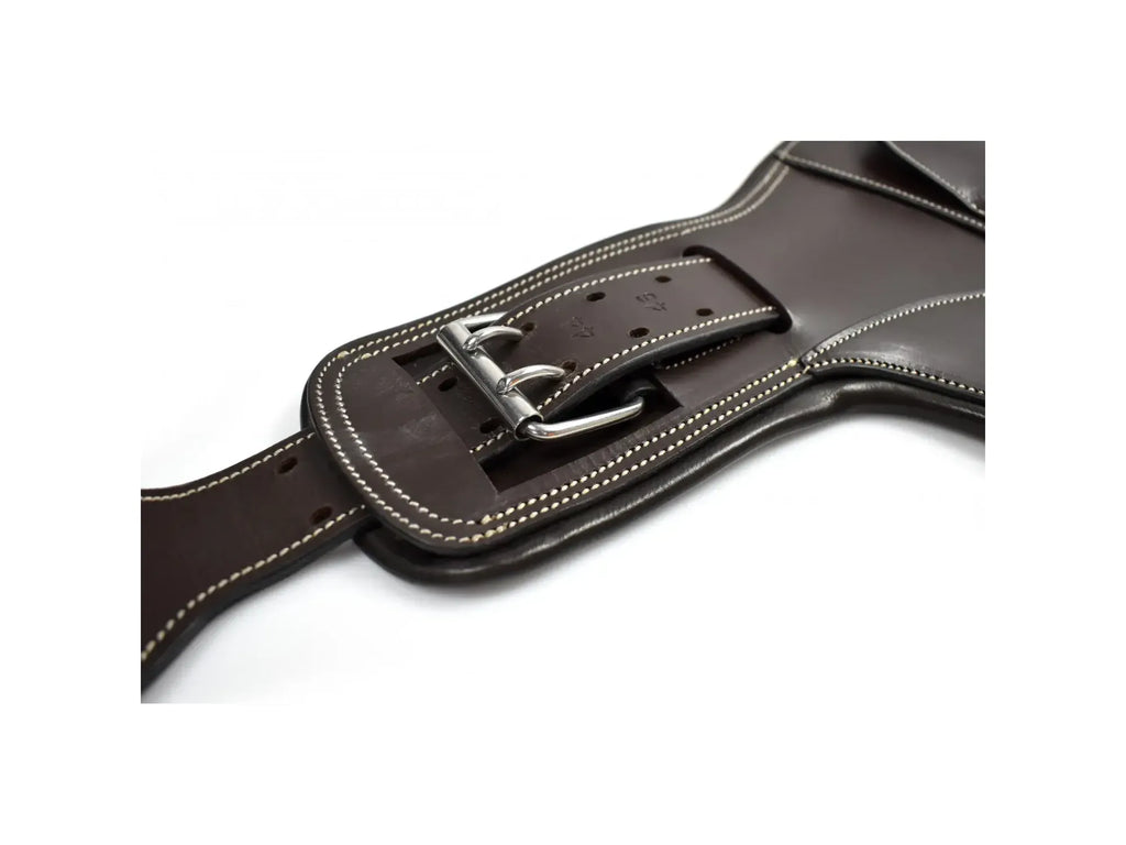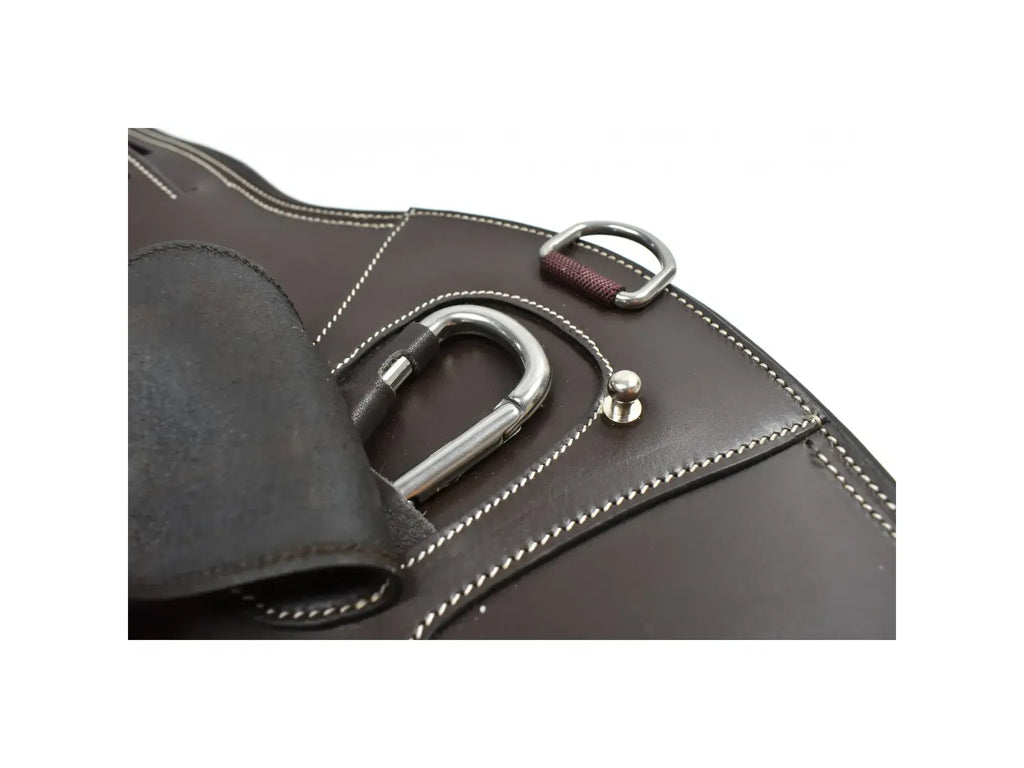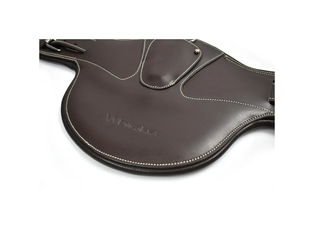 Our new, revolutionary Universal Stud Guard has just landed here at Whitaker UK and is the perfect addition to any Whitaker (or other!) saddle. The reinforced straps have been anatomically designed to allow up to 8" of adjustment, ensuring your horse is comfortable no matter their condition. The smooth outer leather is exceptionally durable and the central carabiner is covered with a leather patch for protection against studs. The inside features a soft, moisture wicking leather padding and both sides of the girth have strong elastic for a secure, yet comfortable fit.