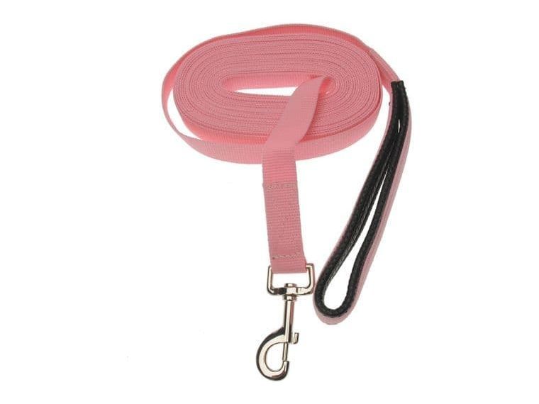 A soft cotton webbing lunge rein with a touch grip handle and clip attachment.