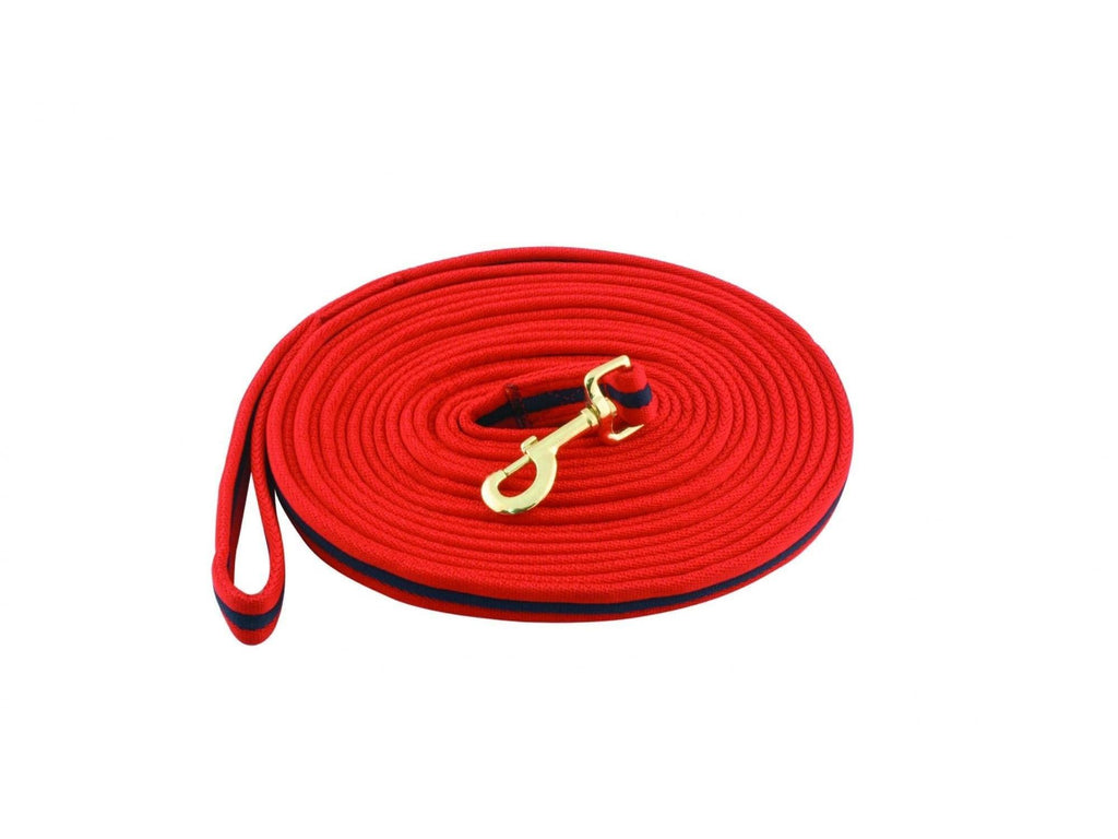 This lunge rein measures 8 metres in length and is available in a range of attractive two tone colours with a trigger clip.