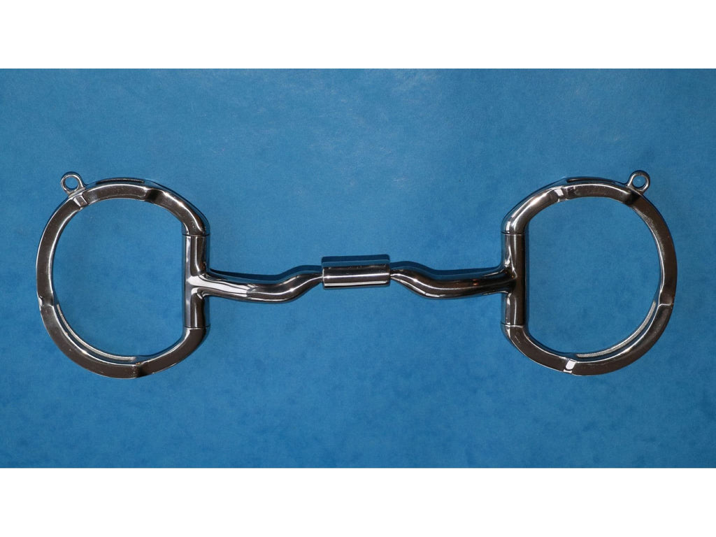 Additional control options are available as hooks are built in to the Eggbutt Rings. Hooks allow for the attachment of the reins and bridle cheek pieces and allow the bit to work using leverage downward over the tongue while leaving space for the tongue to fill. When the reins are taken up, the mouthpiece rolls downward and backward into the mouth while also pulling downward from the poll. This is very useful for horses that tend to go with a higher head carriage.