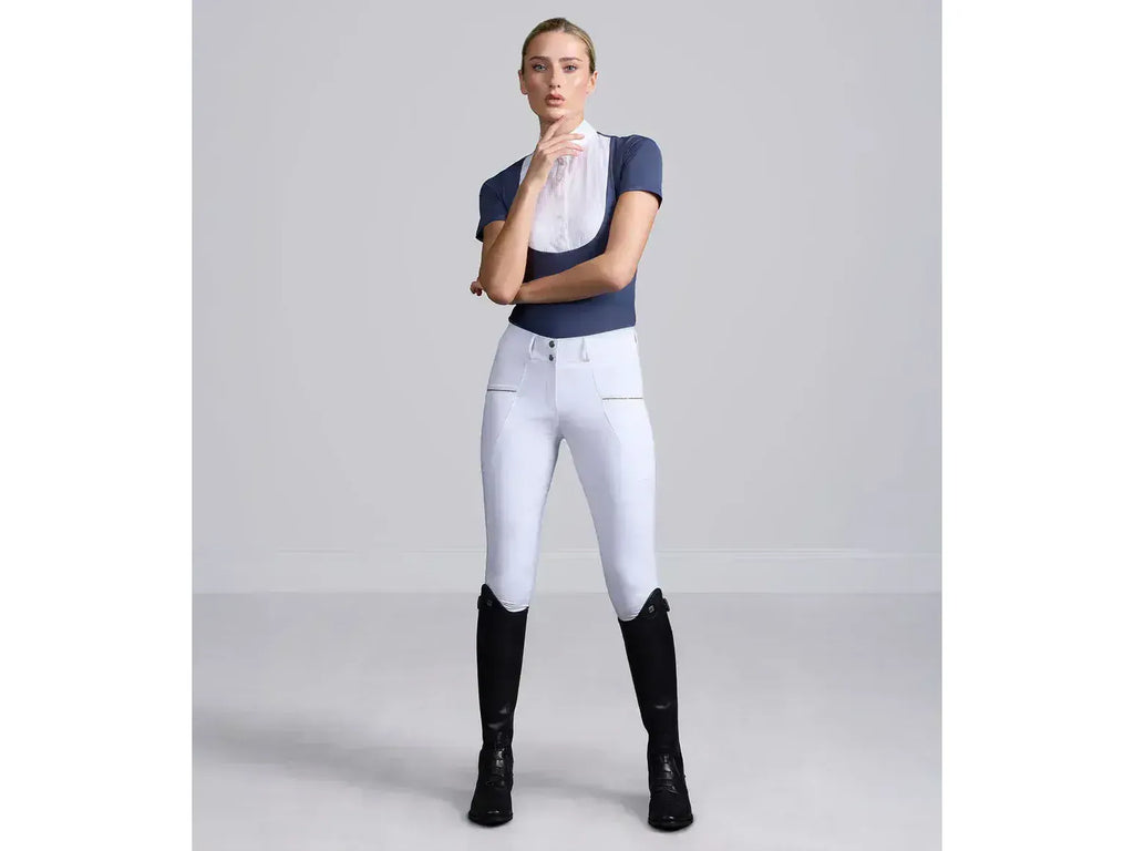 Available in a pristine white tone for competition, these breeches combine professional polish with peak functionality. As part of the BLACK LABEL collection, the Ofena Ladies Full Seat Riding Breeches deliver a luxurious aesthetic, uncompromising performance, and timeless craftsmanship, making them an essential choice for riders seeking both style and substance.
