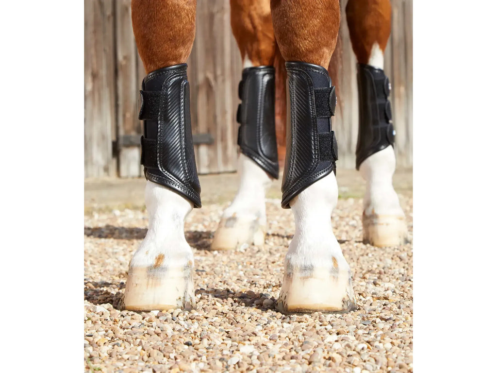 Developed to encourage airflow and to keep joints and tendons cool. The ventilation allows heat build up to escape and cold air to pass through. For maximum comfort, we have lined the inside with our comfort dry lining (CDL). The splint and fetlock area are protected by a shockproof material and then covered by our carbon tech microfibre leather for extra protection. Double locking straps give these brushing boots extra security and make them a great choice for everyday use or for competitions.