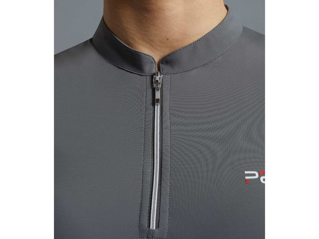 A decorative curve stand collar is finished with a ¹/ zip, allowing for easy closure. PE brand colour stripes trim the front and sleeve edge for a sporty touch. Perfectly coupling with the Mirillo Riding Tights for seamless styling.
