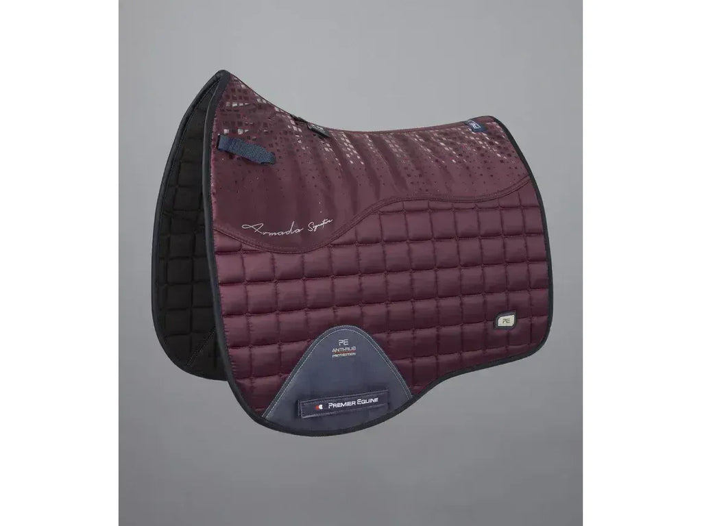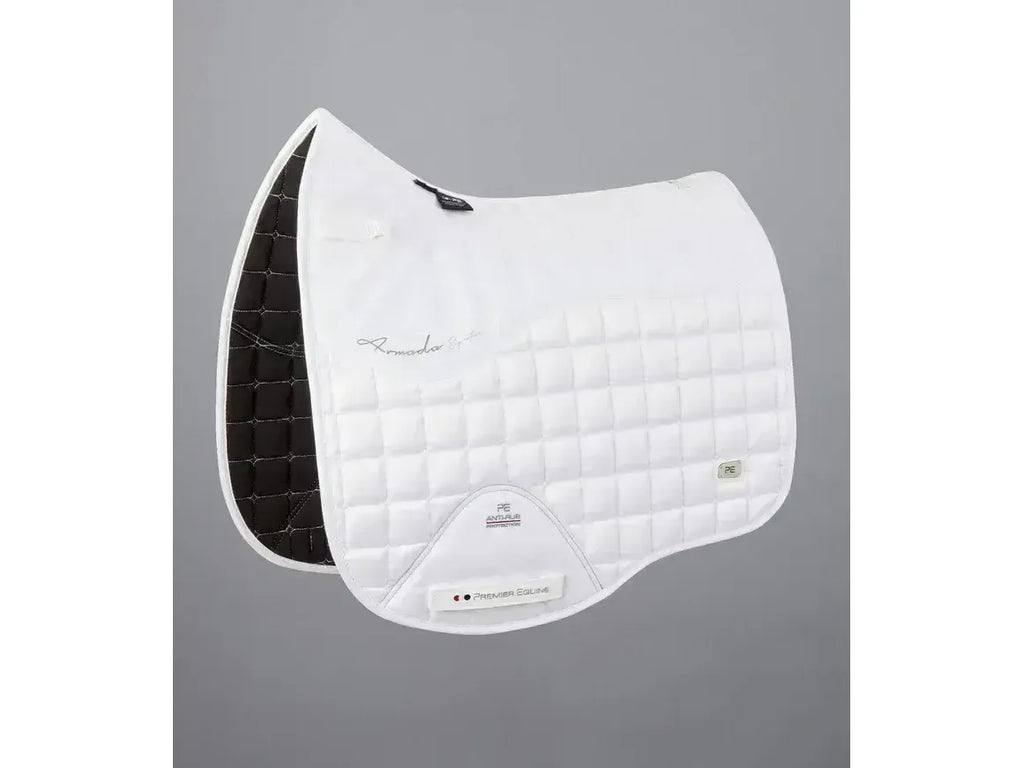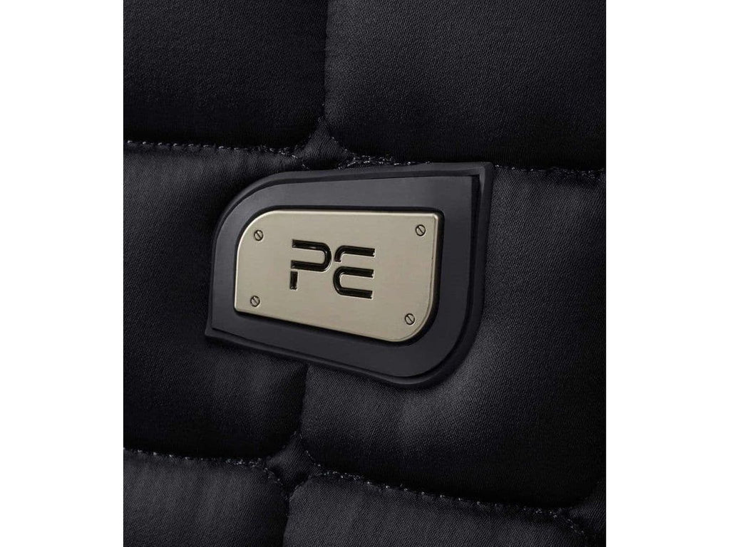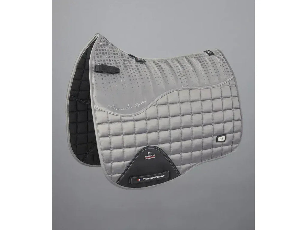 A sophisticated satin Dressage saddle pad with anti-slip gel and signature styling.
