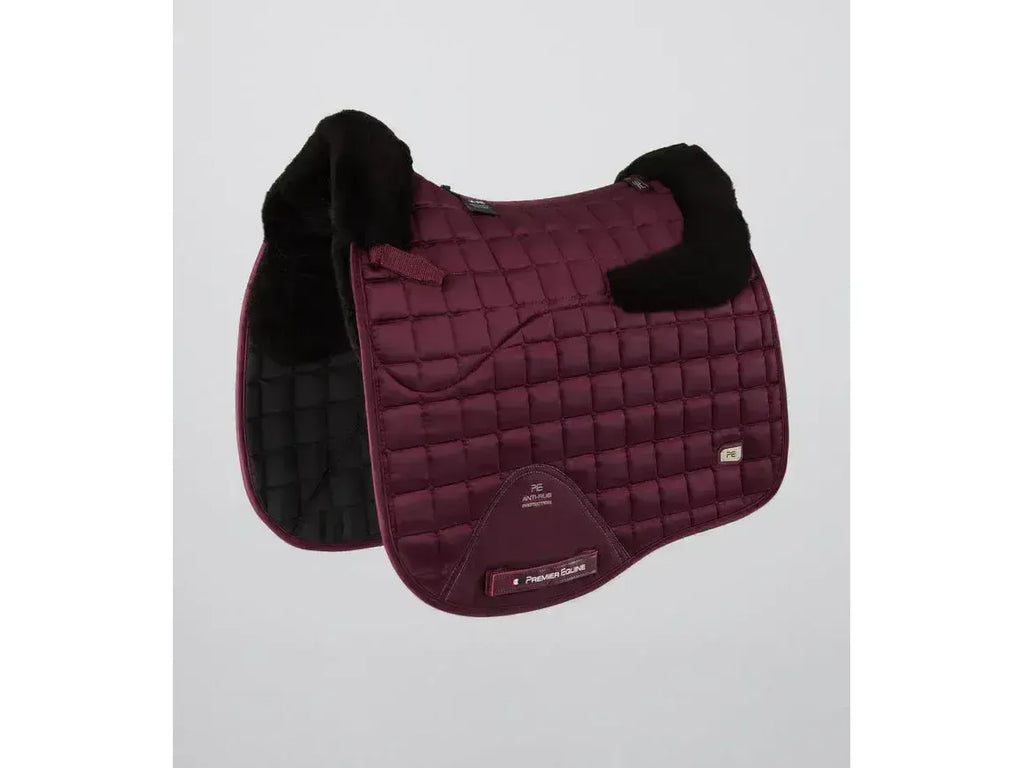 A sumptuous satin dressage close contact saddle pad with Grade 1 Merino Wool.