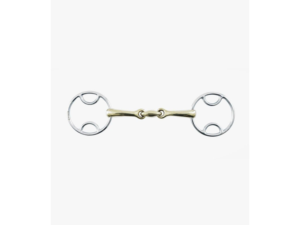 A central lozenge helps to distribute pressure over both the tongue and bars of the mouth, encouraging mouthing and contact. Brass alloy is formed when copper is alloyed with a harder metal, this produces a warm and durable material which is perfect for horse bits as it can aid salivation and be more palatable to the horse.