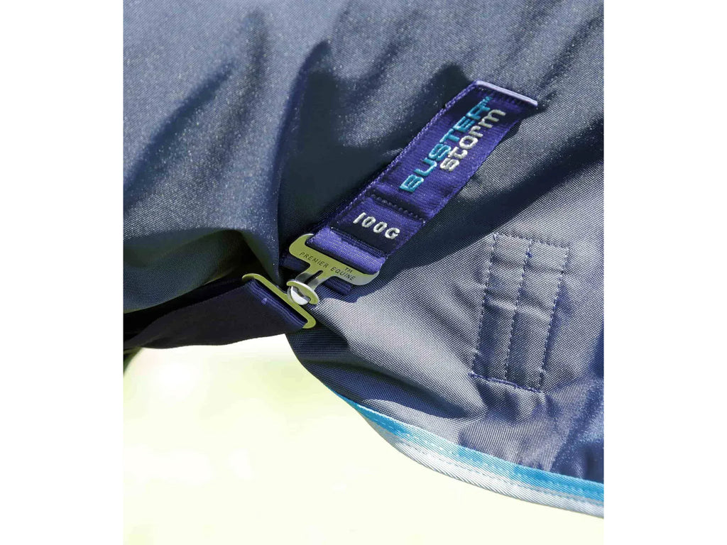 The Buster Storm 100 Turnout Rug offers an exceptional cut with an integrated snug-fit neck for great added protection against the elements. The seamless neck design is ideal for horses who suffer from soreness and rubbing over the wither area. Treated with our proven breathable waterproof formula this lightweight turnout rug will aid in regulating your horses temperature, keeping it warm, dry and comfortable. As part of the evolution of the Buster an extra high shoulder gusset has been incorporated to allow for a greater range of movement. Completed with contrast trims, embroidery and premium quality branded stainless-steel hardware.