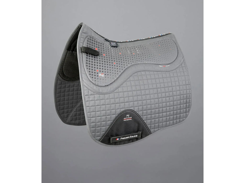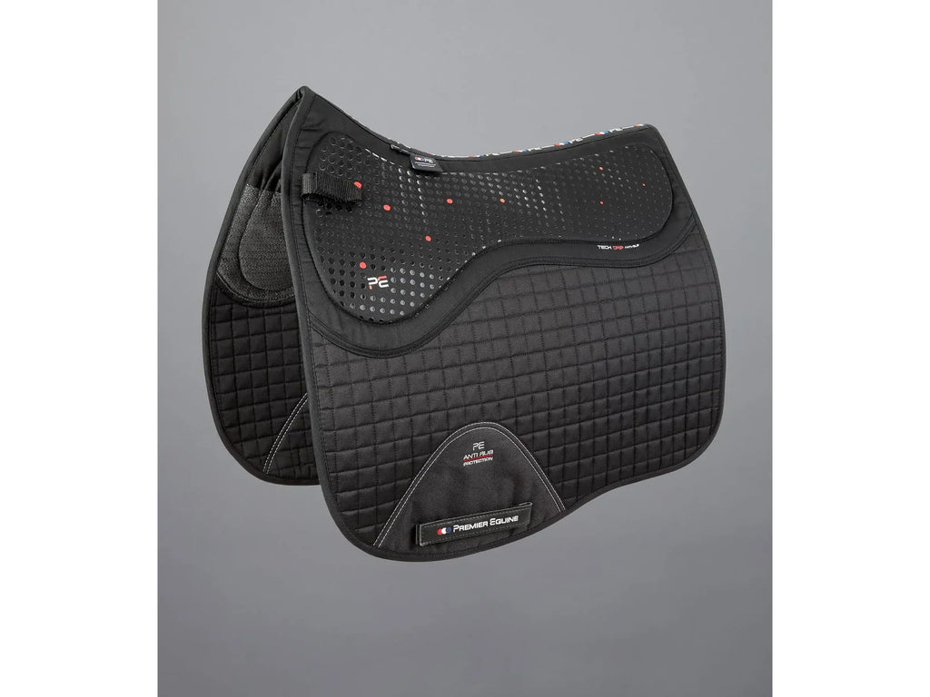 An innovative dressage saddle pad crafted from a combination of technical gels, anti-slip and high quality cotton fabrics.