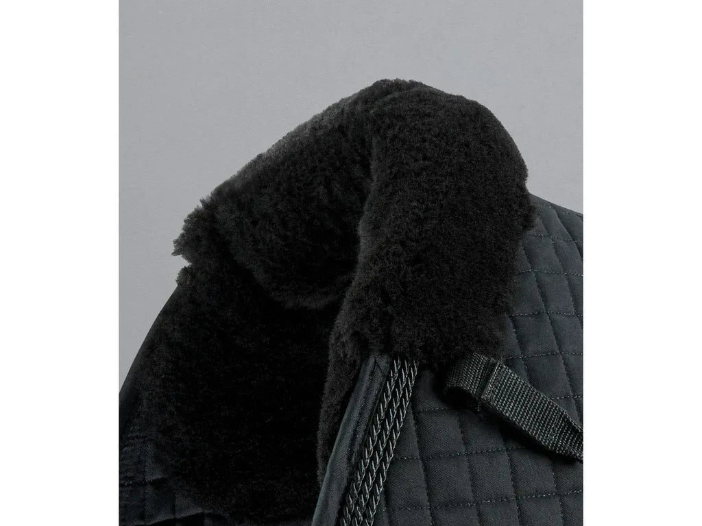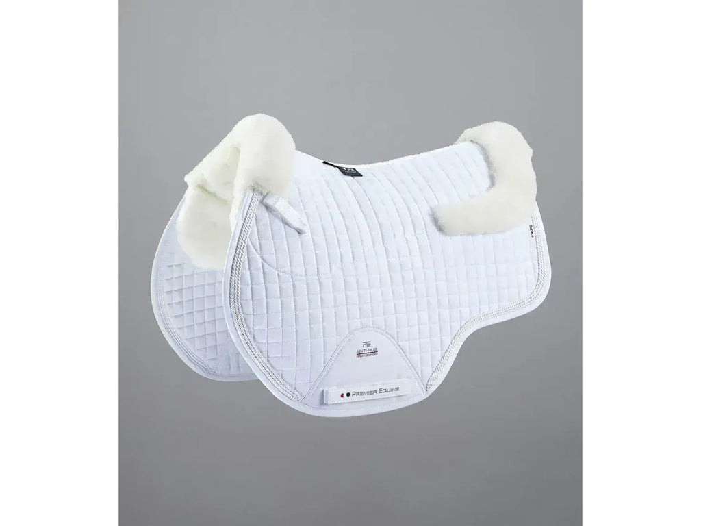 Merino wool knitted onto cotton yarn gives you all the wool you need with no skin attached. The natural fibres of wool are less likely to cause skin reactions or allergies. Wool also has the ability to absorb up to 30% of its own weight in moisture, keeping your horse dry and comfortable under saddle. Real wool is still one of the most technically advanced materials in the world and probably the best you can use under a saddle pad.
