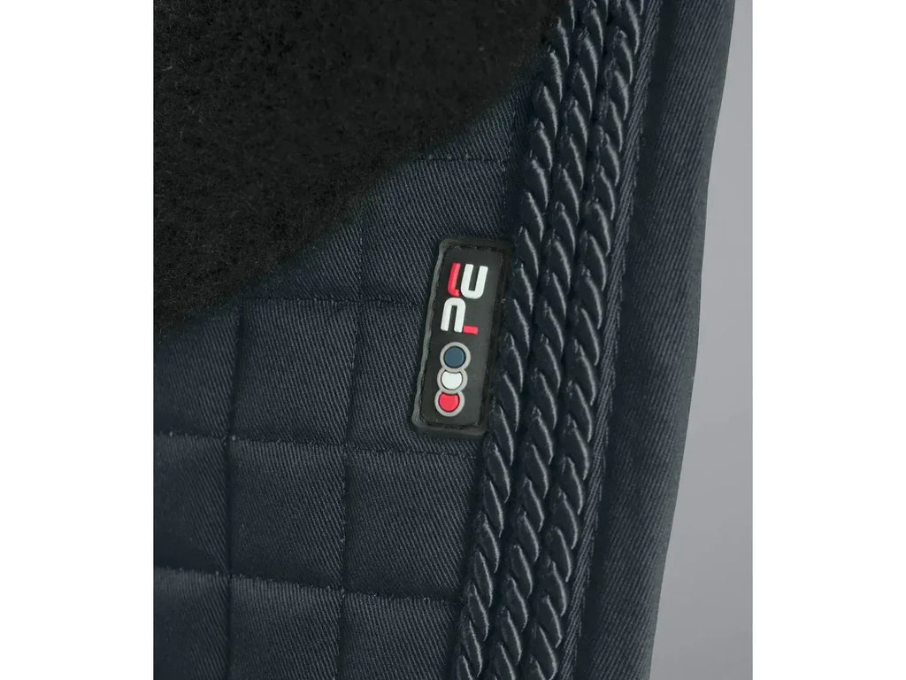 A 600 denier polyester girth cover provides anti-rub protection and double Velcro adjustable straps and adjustable D loop straps help with girthing. Decorative twisted ropes and a European style cut away hem give a stylish and sophisticated look. A truly high class wool saddle pad suitable for everyday or competition use with the advantage of being fully machine washable.