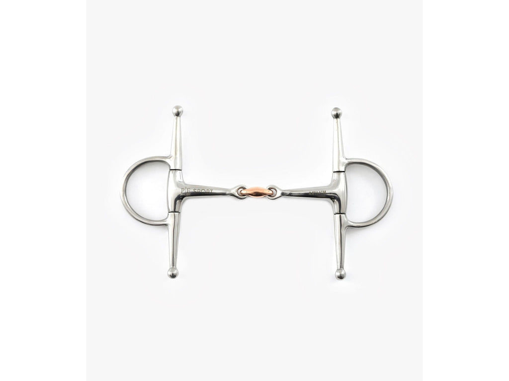 Full cheek snaffles are useful for green horses or young horses as they can help with steering. Shanks on the bit create a positive action against the horse's cheeks when asked to turn. The full cheek design also prevents the bit being dragged through the horse's mouth. This bit can be used with keepers on the bridle to help keep the cheeks vertical. The double jointed mouthpiece with copper lozenge distributes pressure evenly over the tongue and bars of the mouth whilst reducing the nutcracker action of a single jointed bit. Copper is a warm metal which encourage the horse to salivate and mouth on the bit.