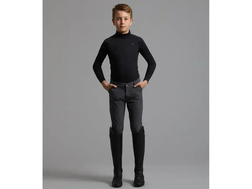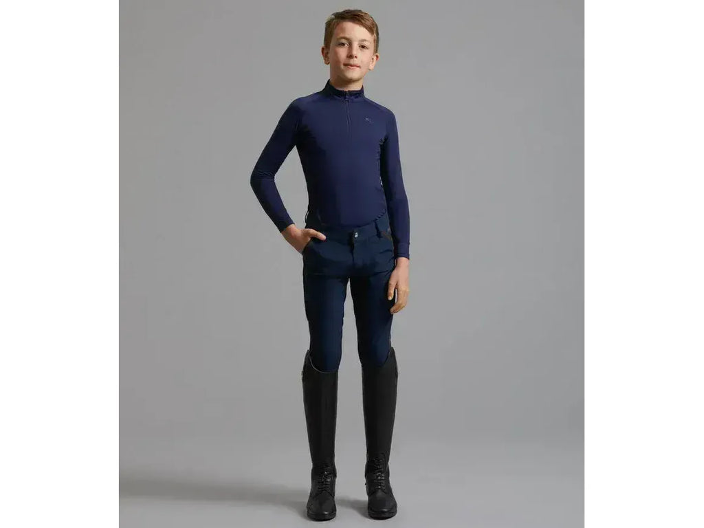 Practical and stylish boys riding breeches featuring a gel knee patch for pivotal grip.