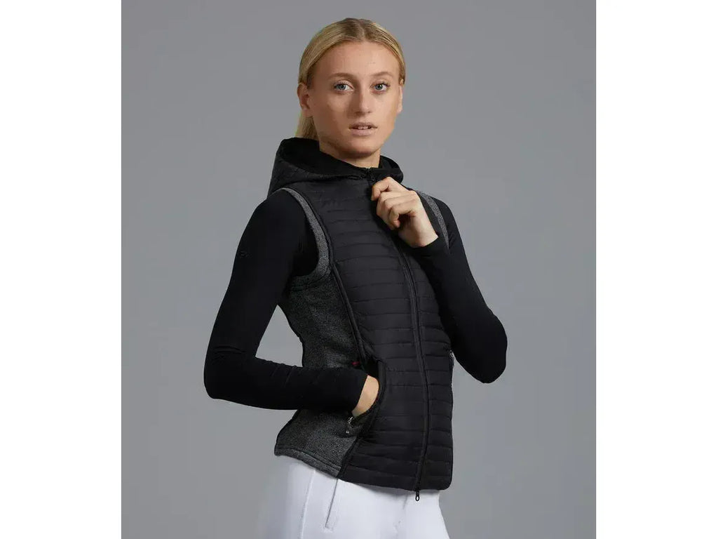 Two zip fastened pockets to the front of the jacket offer a place to store valuables and this technical hybrid riding gilet features a front YKK zip. An ideal layer for training, riding or outdoor living.