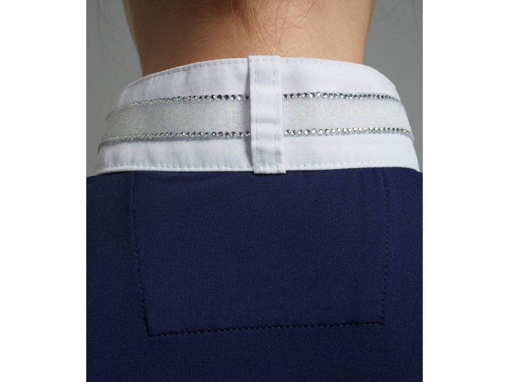 Embellished diamante details set the tone of this girls competition shirt which has been crafted from our high quality nylon jersey for a style that truly performs. The main body is constructed from a four-way stretch fabric with excellent moisture wicking properties. This technical fabric will help keep you cool whilst looking effortlessly stylish in the show ring.