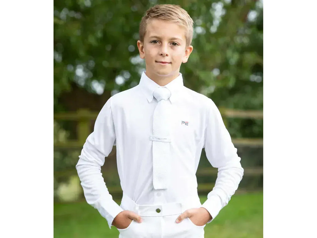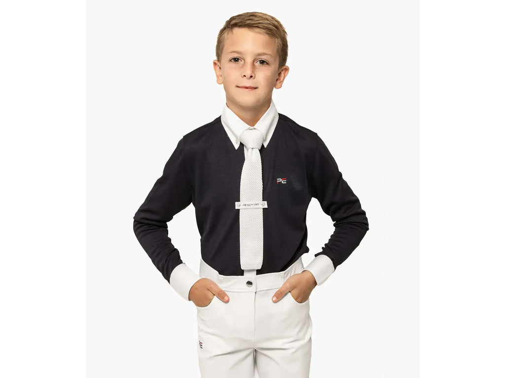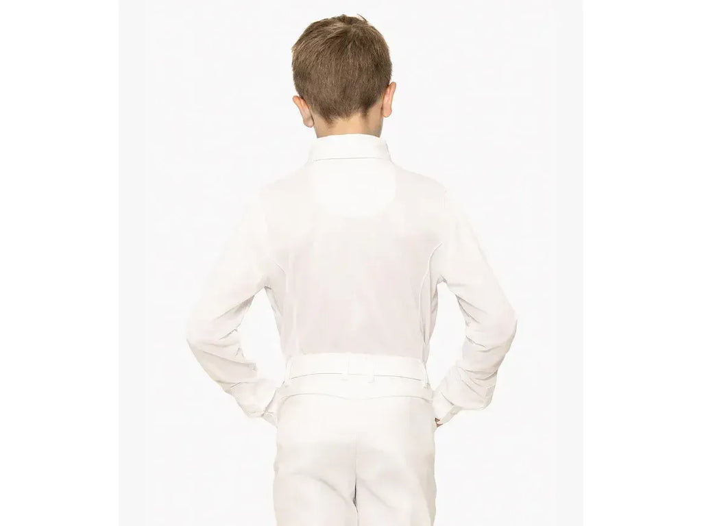 A sophisticated boy's competition show shirt engineered with technical four-way stretch pique jersey which boasts high breathability and moisture wicking properties, ideal for keeping cool and comfortable in the show ring.