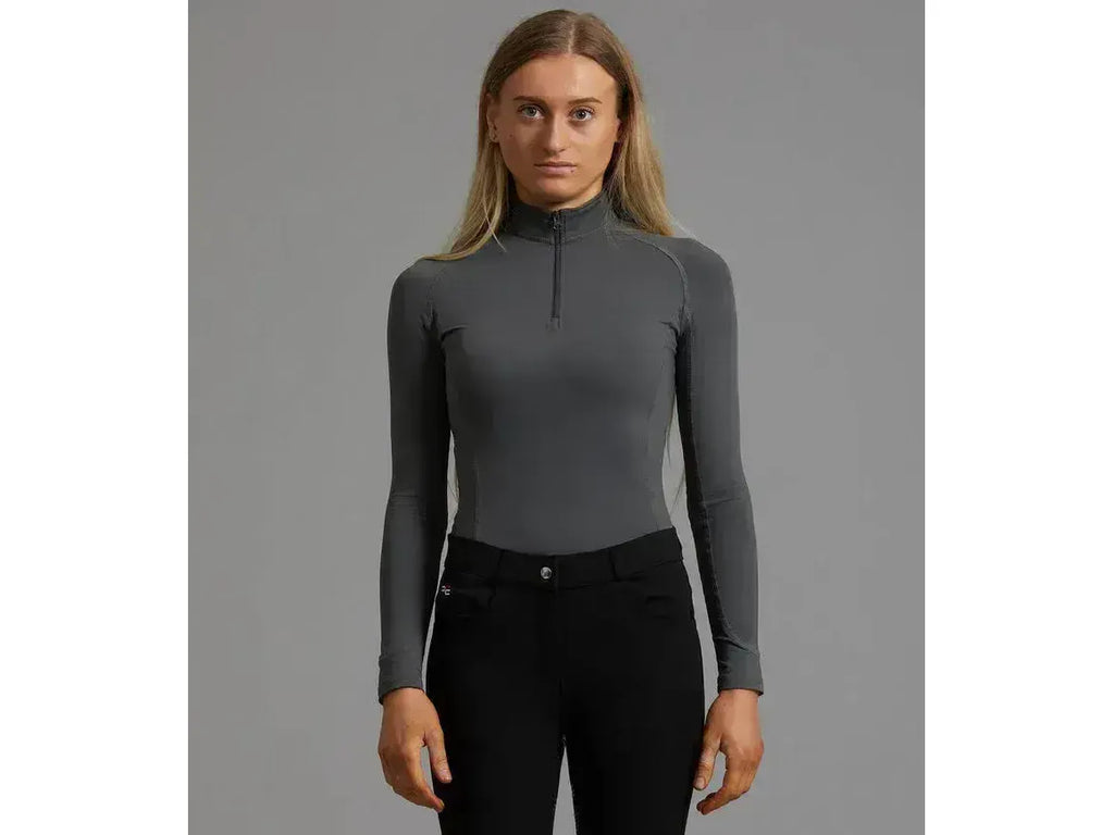 The sweat-wicking thermal fabric offers an exceptional level of comfort during intense training whatever the weather. A quarter-zip and various silicone print elements provide the ultimate in equestrian style and is cut to provide an aerodynamic streamlined silhouette.