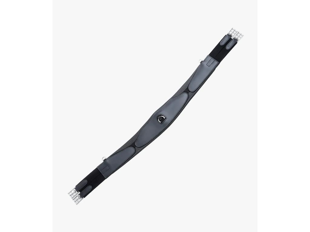 Anatomically shaped for improved comfort and performance. One central D-Ring and two side D-Rings have been added for the attachment of martingales, breastplates and/or training aids. Smooth leather panel work combined with high quality stitch lines provide a sleek, professional aesthetic. Complete with premium quality stainless steel buckles, this girth is ideal for use on sensitive horses in everyday work or at competitions.