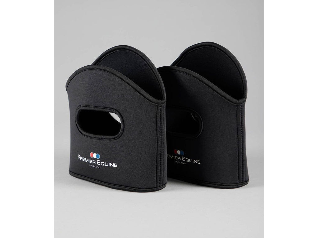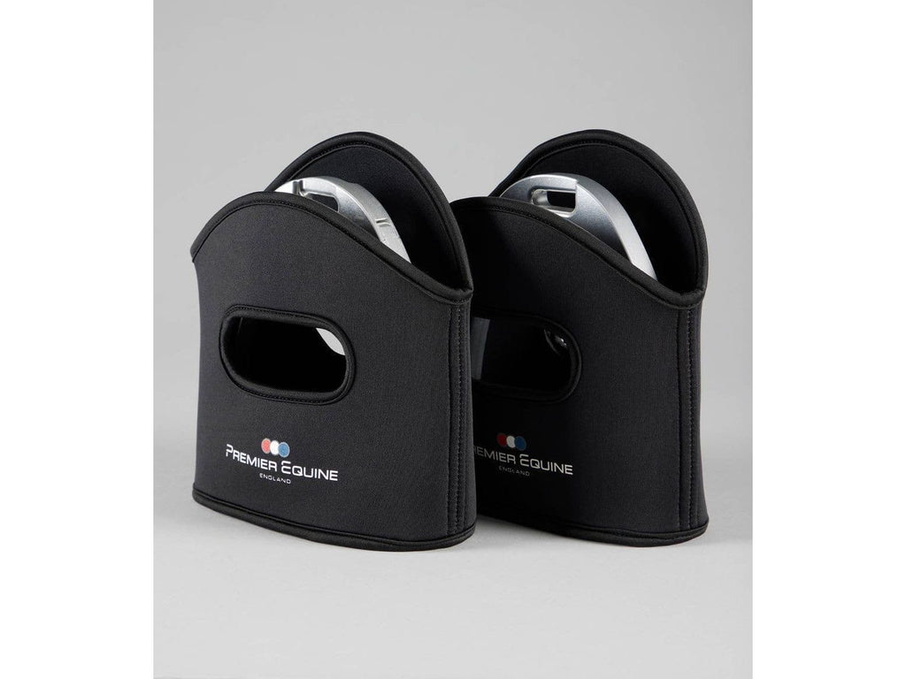 Protect your saddle from scuffs, scrapes, and dirt transferred from your stirrups. Shaped to neatly slip over your stirrup irons, providing a protective neoprene layer to guard your saddle.