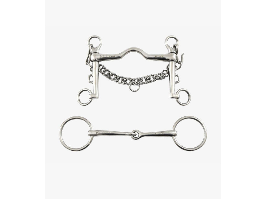 - Set includes: 1 x Single Jointed Loose Ring Bradoon Snaffle, 1 x Medium Port Mouth Weymouth Bit & 1 x Curb Chain