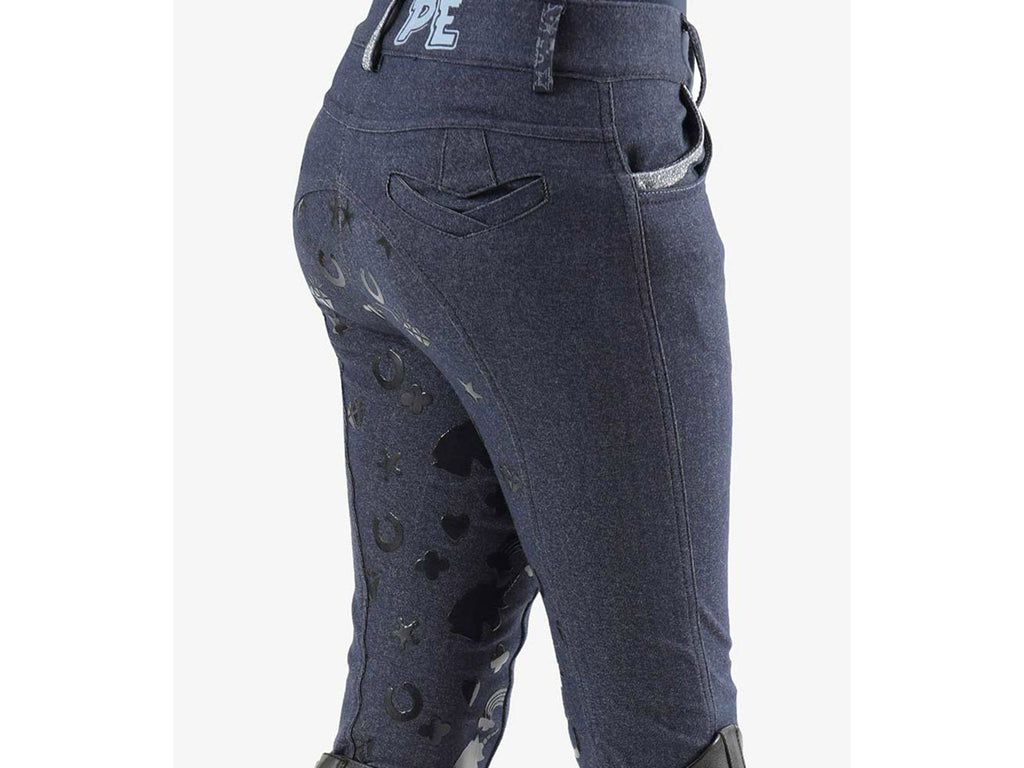 Crafted from a denim-look cotton blend these kids breeches offer an on-trend look with superior riding performance.