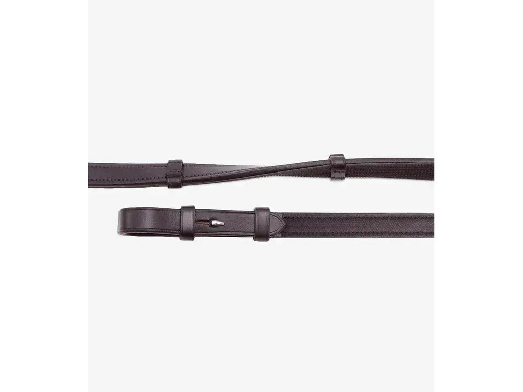 The inside surface of the rein, which faces the horse, is composed of rubber with a fine bobbled pattern for increased grip. The outside surface of the rein is covered with our sumptuous Italian leather for a sleek and professional finish.