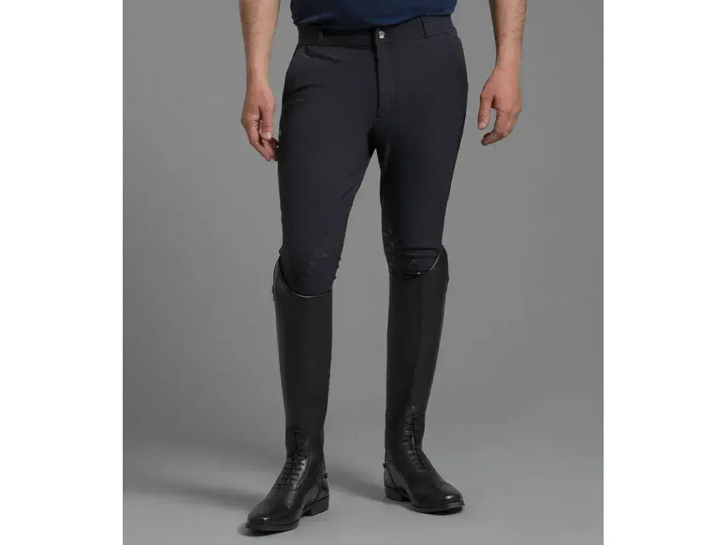 Technical mens breeches featuring gel knee patches for pivotal grip.