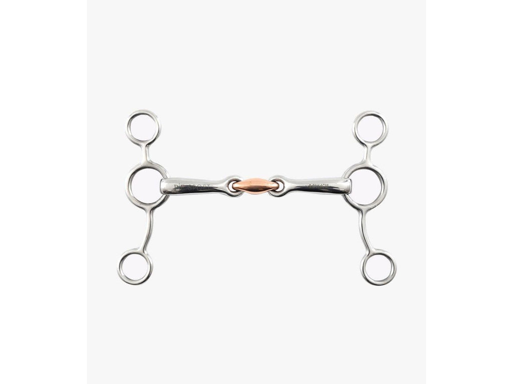 The lozenge in the centre of this bit contours the shape of the tongue and helps to reduce the nutcracker action of a single jointed bit which helps form a soft contact, allowing clear aids to be given down the reins. Copper is a warm metal which encourages salivation and mouthing on the bit. A useful bit for horses that tend to lean against the riders hands.