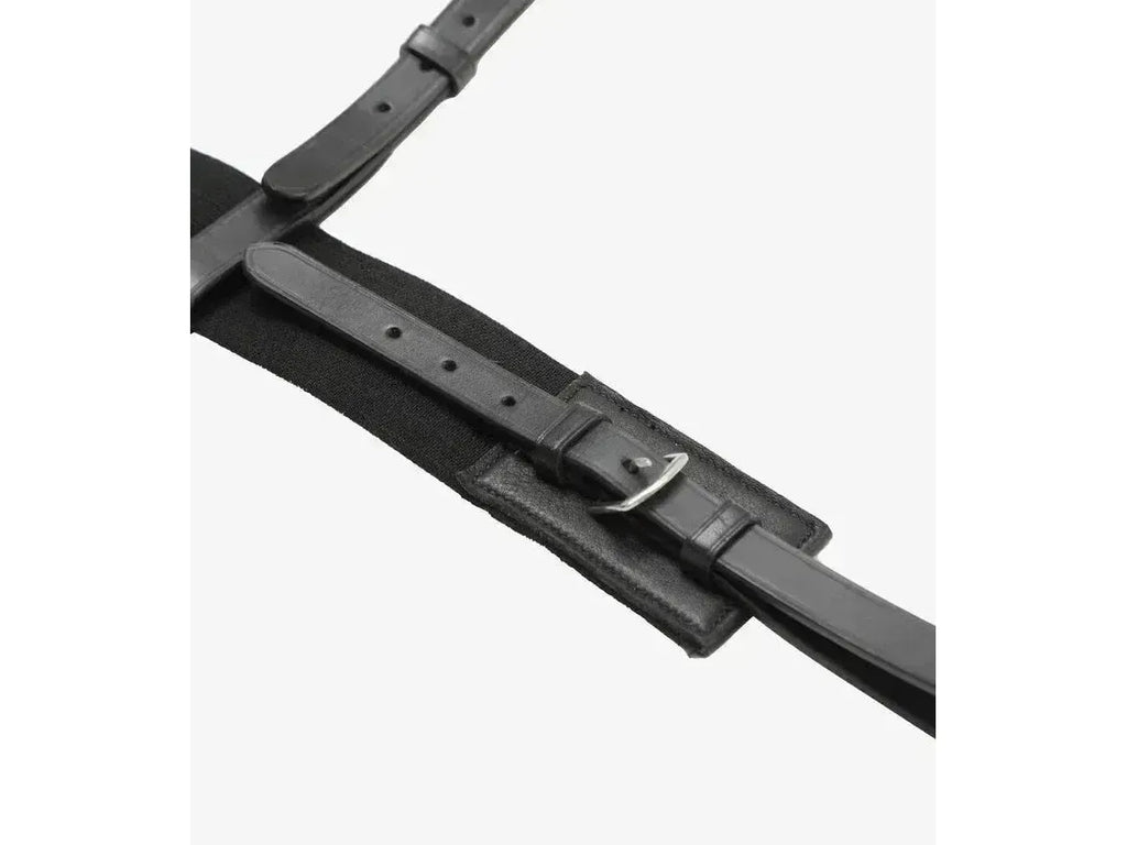It is made from a combination of the finest quality Italian leather and elastic materials. The two inch wide elasticated panel attaches to the girth straps on either side and is held securely in place with the help of a leather neck strap. Both the leather neck strap and the girth attachments are adjustable so that you can fully customise the fit to suit your horse’s individual needs.