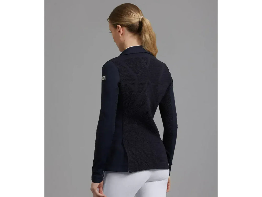 This ladies competition jacket is ideal for a wide variety of equestrian disciplines. The construction of this innovative design combines panels of differing technical fabrics. The face of this jacket is crafted from a lightweight sleek material that feels luxuriously soft to the touch and comfortable against your skin. Evolved for the modern rider, the back and arms incorporate a technical 3D knit which is moulded to the muscular anatomy of the back and shoulders of the rider. This innovative construction allows for enhanced freedom of movement whilst creating unparalleled breathability, perfect for the intensity of competition.
