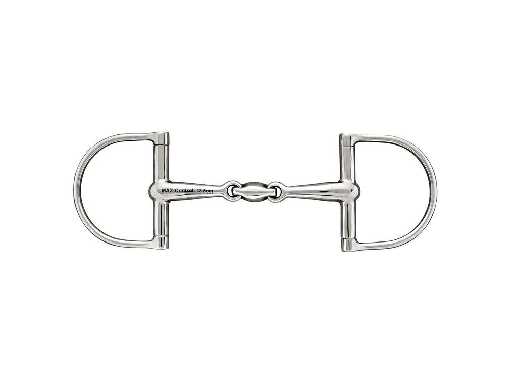 Sprenger Max Control D-ring Snaffle with lockup is a double jointed bit with a locking action which is used as a correction or training bit which locks at a certain angle and thus becomes a straight bar.