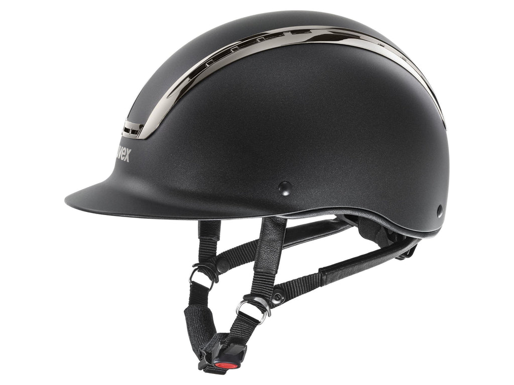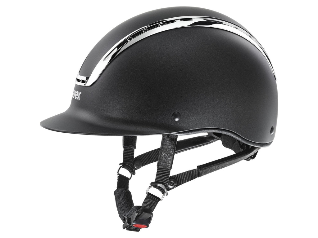 Clean, sporty and flamboyant thats the uvex suxxeed chrome. Its striking design mix featuring a matt finish for the helmet shell and distinctively glossy chrome frame creates a timeless look, causing this classic among riding helmets to shine in a new light. The robust hard-shell helmet has an effective ventilation system and conveniently adjusts in height and width to fit the head thanks to the established 3D IAS system.